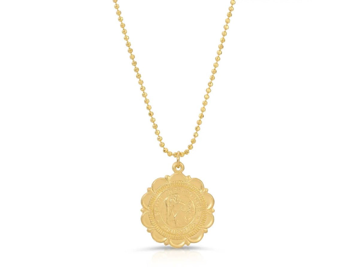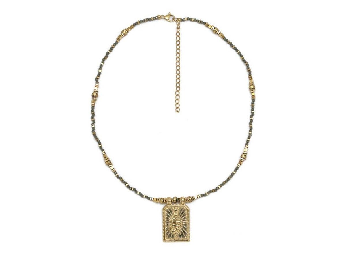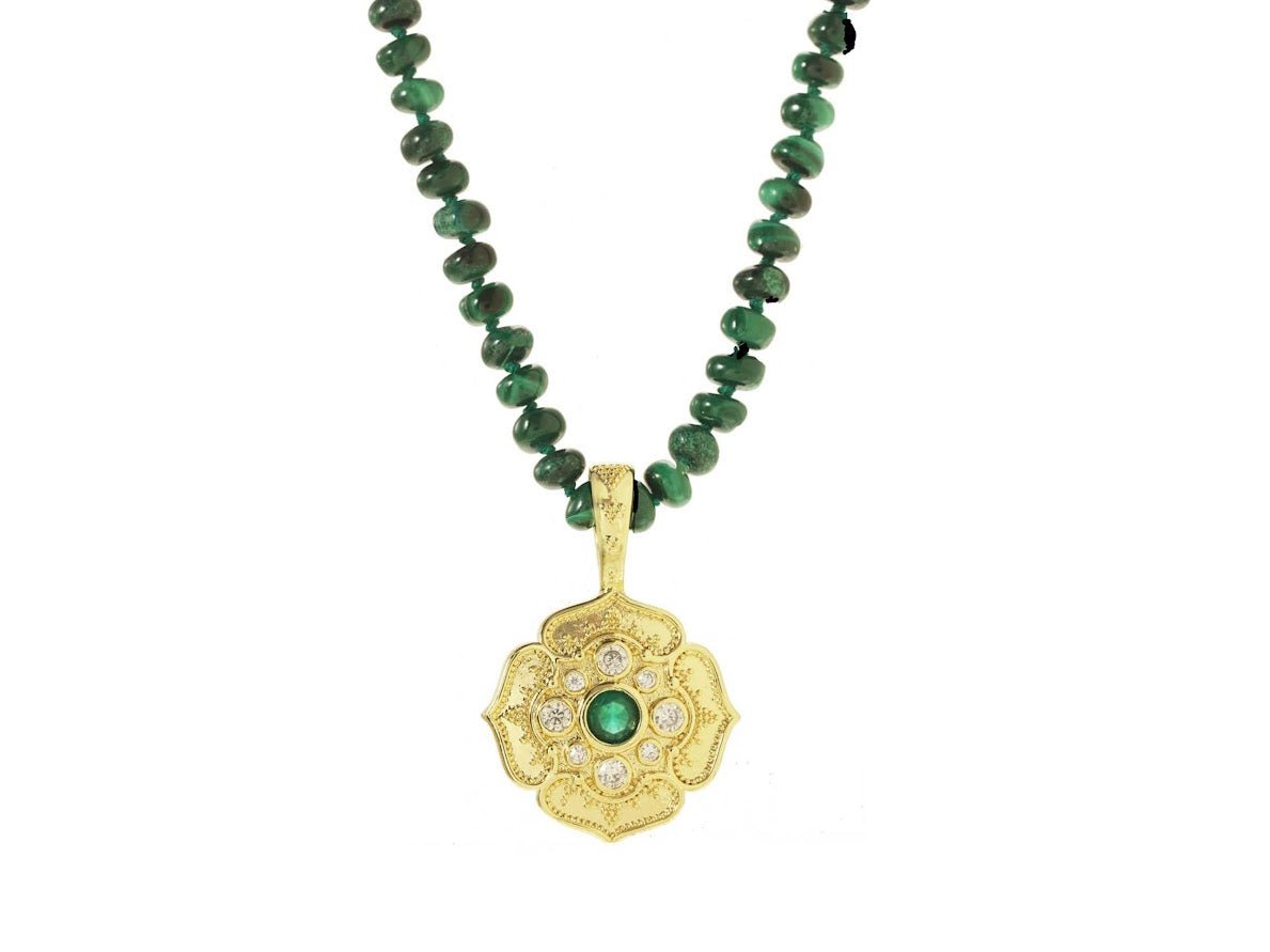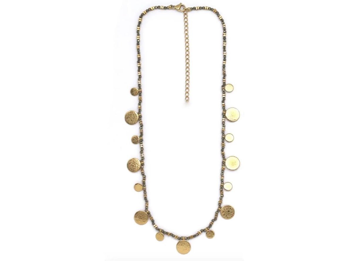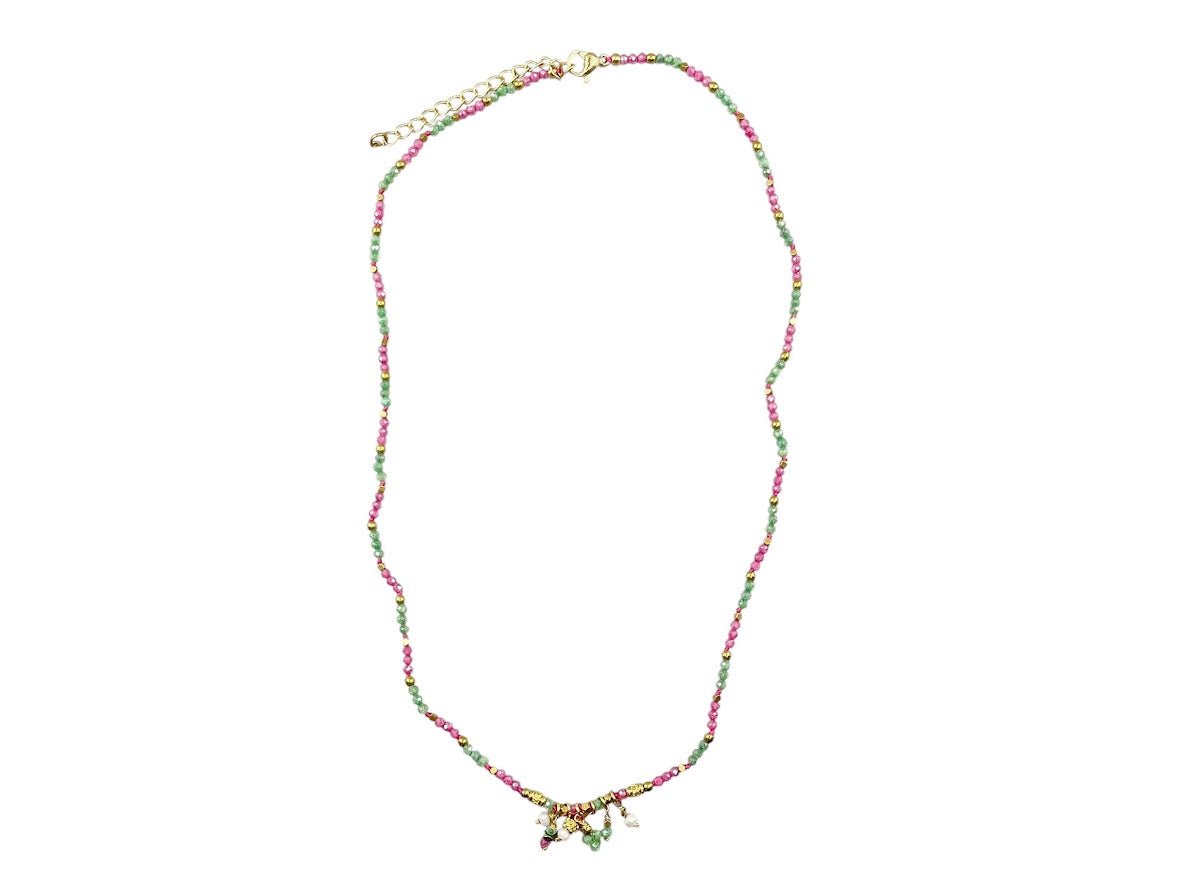 Green Fluorine Bead Necklace with Gold Mini Charms