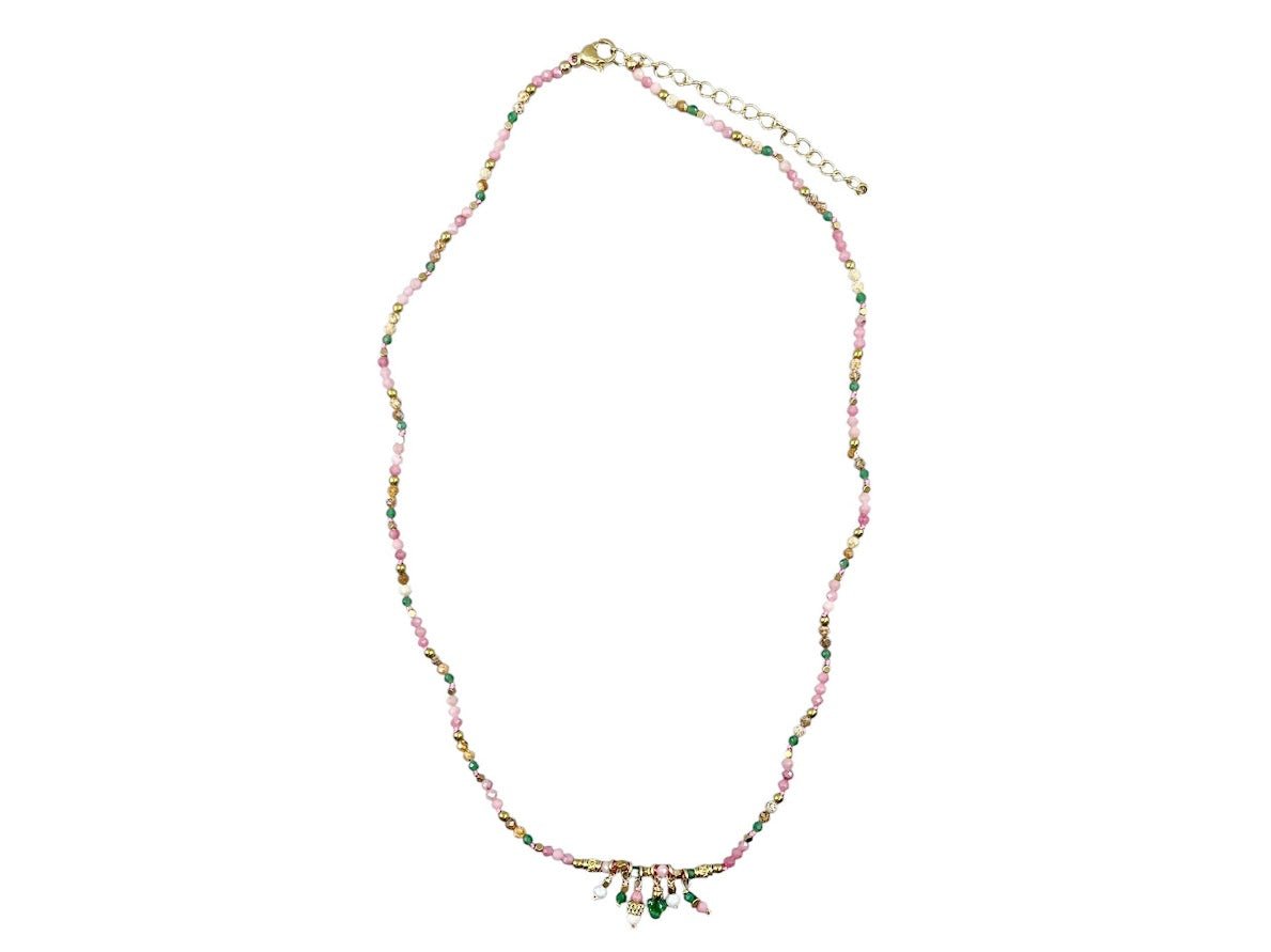 Pink and Blue Beaded Necklace with Delicate Stone Charms