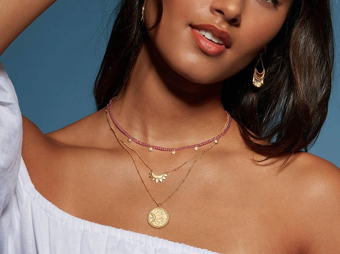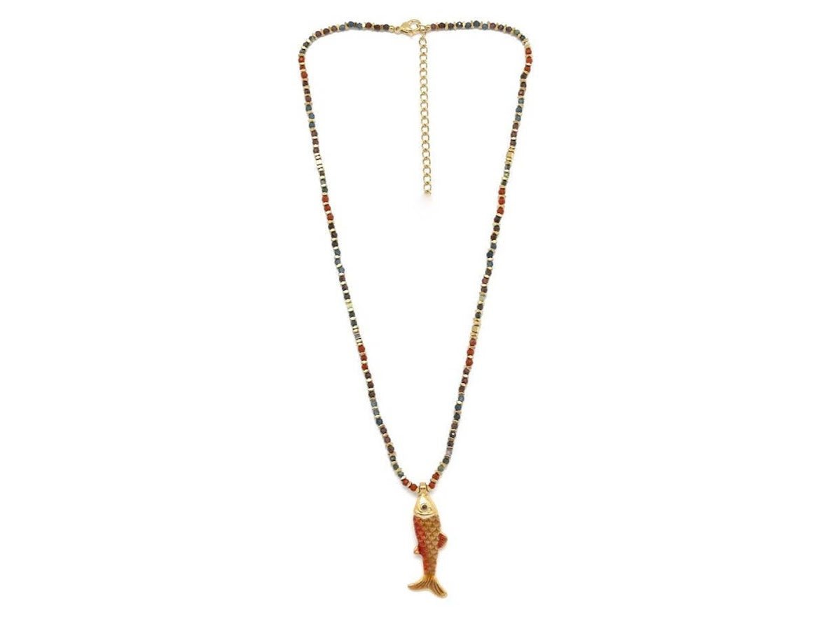 Orange Fluorine Bead Necklace with Gold Mini Charms