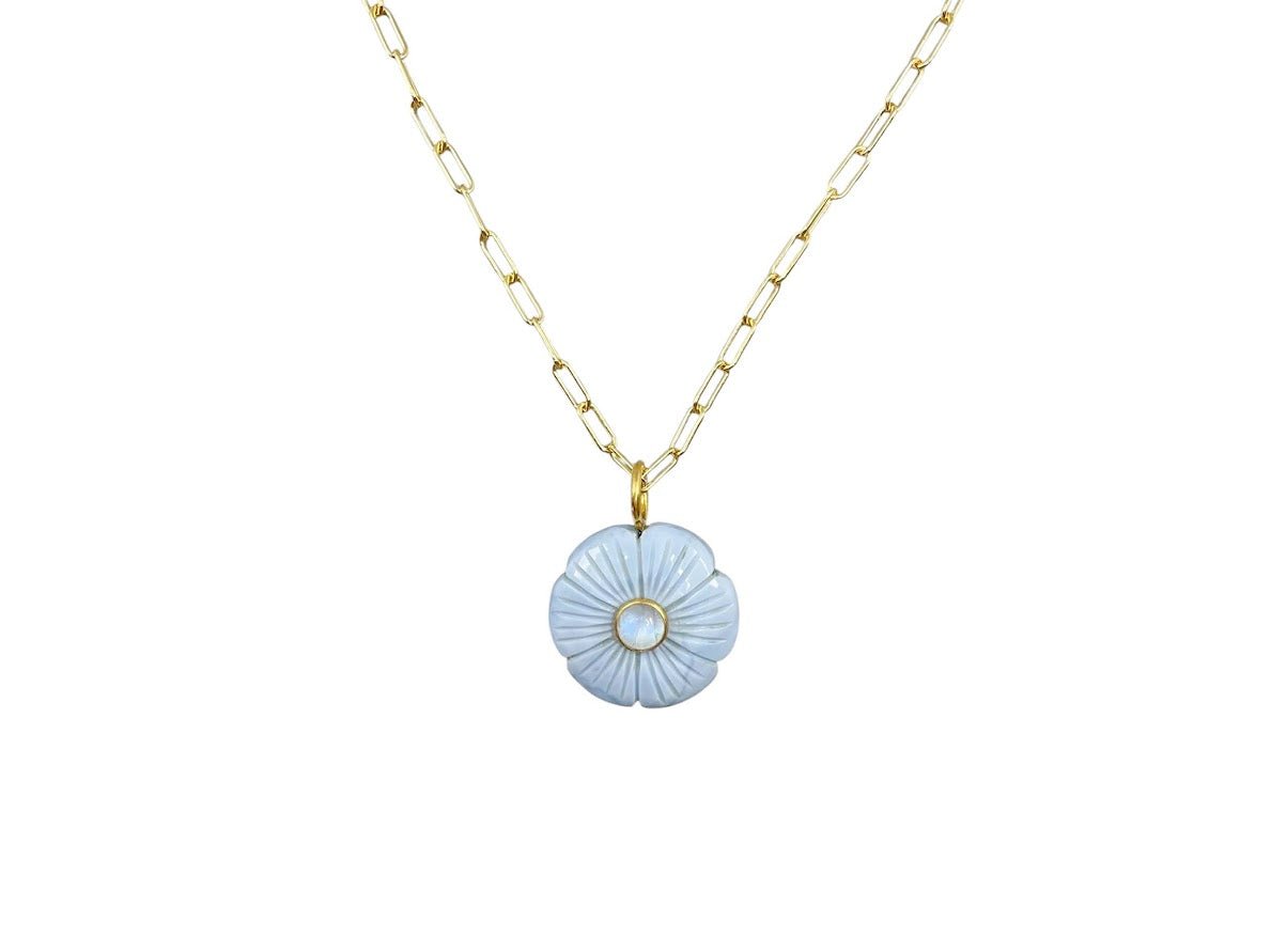 Blue Opal and Rainbow Moonstone Flower Charm Necklace