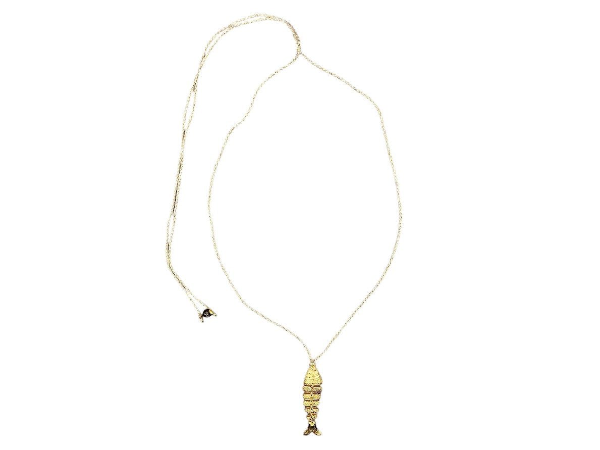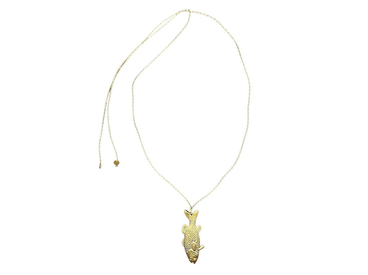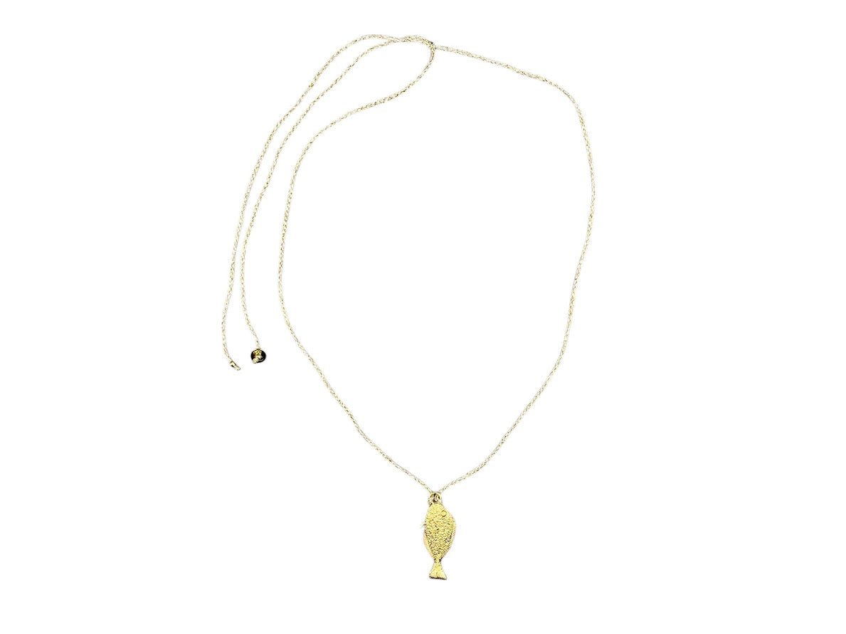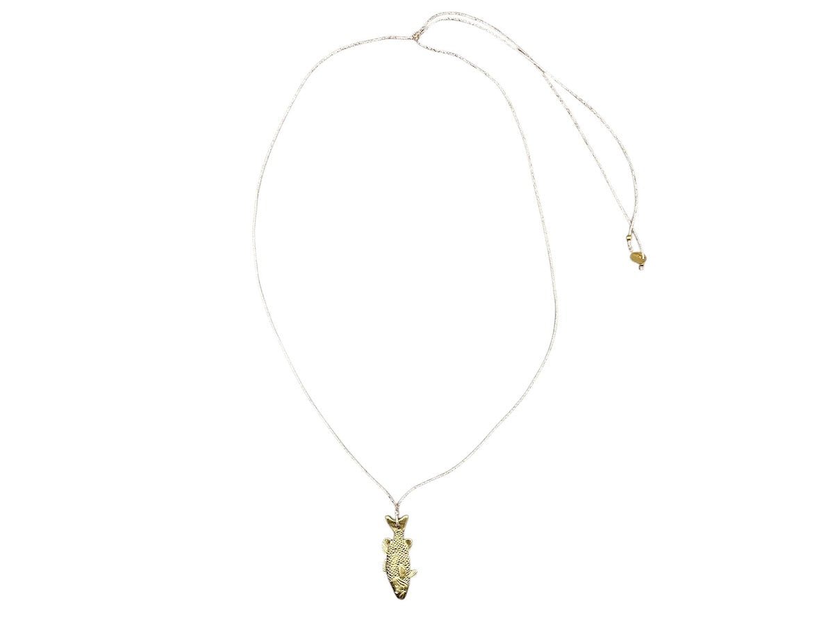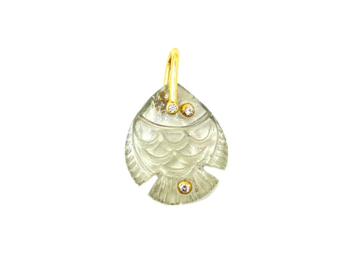 Green Amethyst Fish Charm with Diamond Eye Necklace