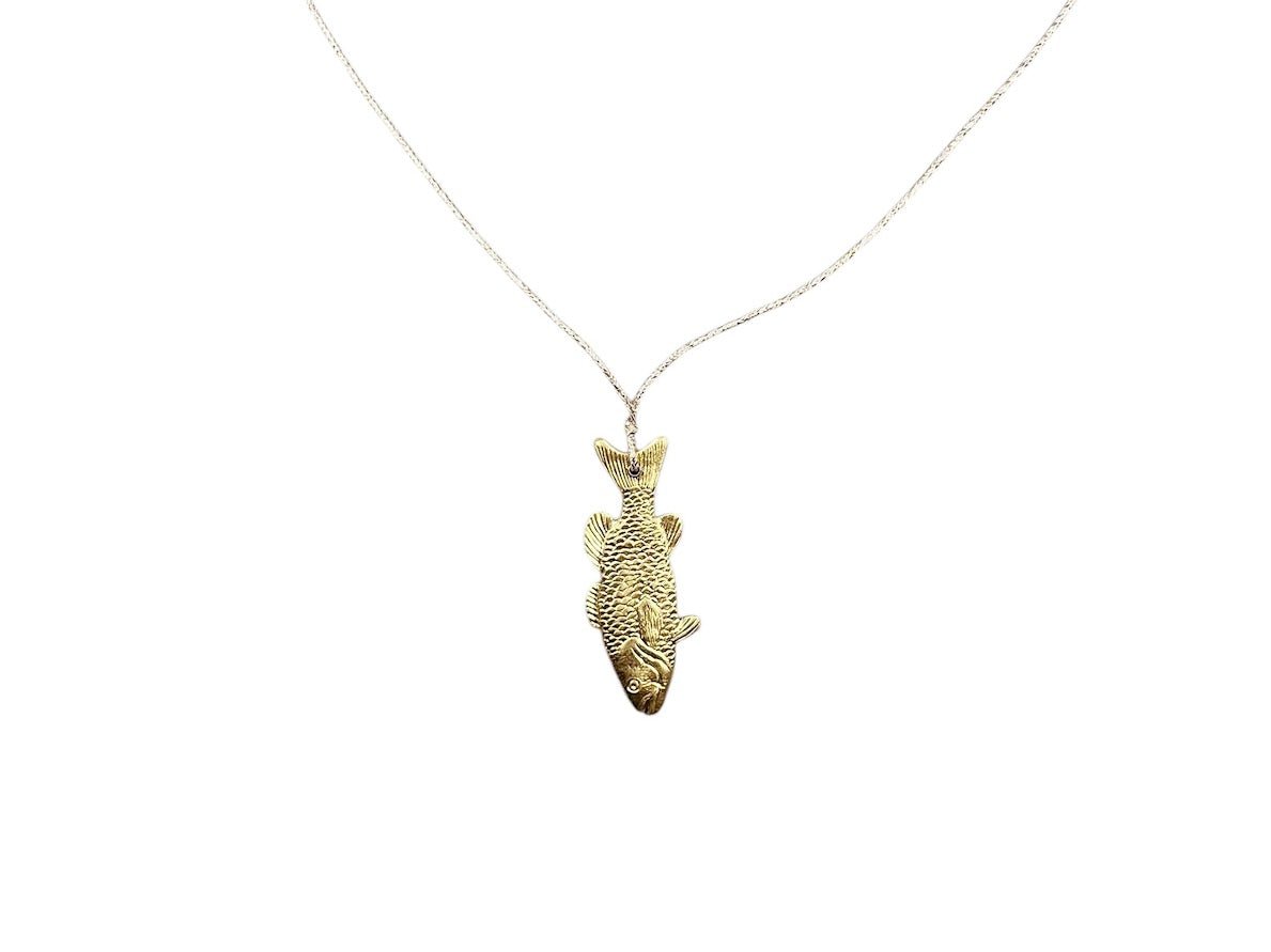 Aquamarine Fish Charm with Diamond Eye Necklace