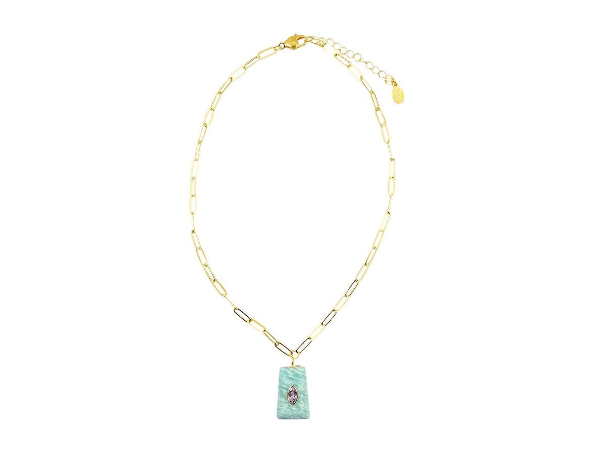 Amazonite Necklace with Chrysoprase and Aqua Quartz Pendant