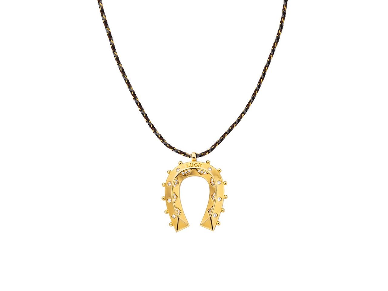 Gold Fortuna Good Luck Horseshoe Charm with CZs