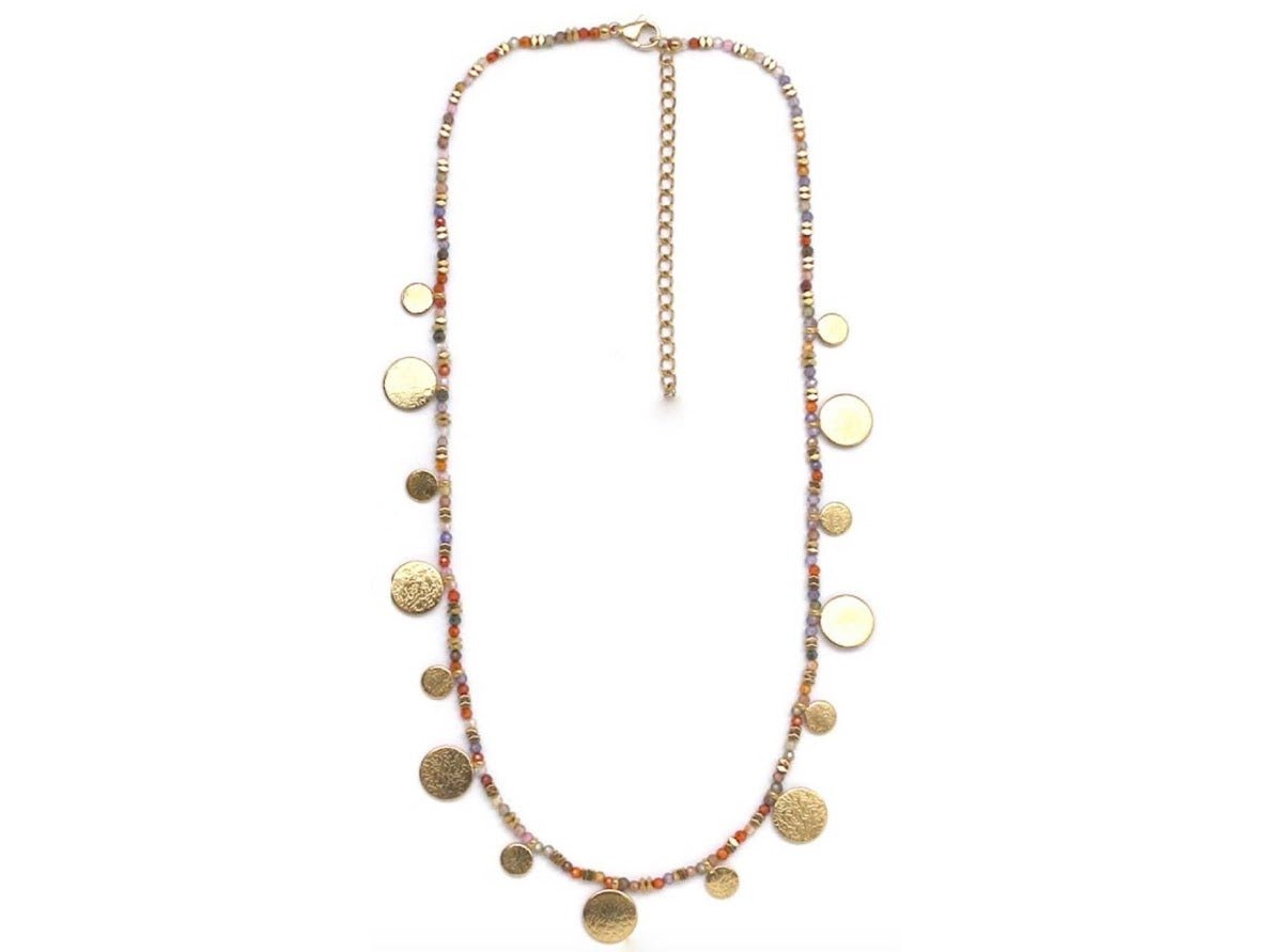 Orange Fluorine Bead Necklace with Gold Mini Charms