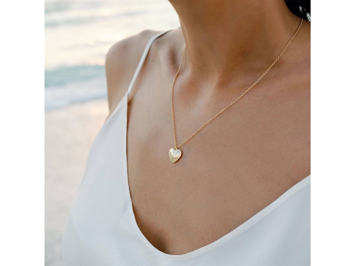 An 18k gold-plated and beaded heart charm that measures 13mm by 14mm hangs from a 14k gold-fill chain that's adjustable from 19 to 21 inches. 14k gold fill clasp and components.