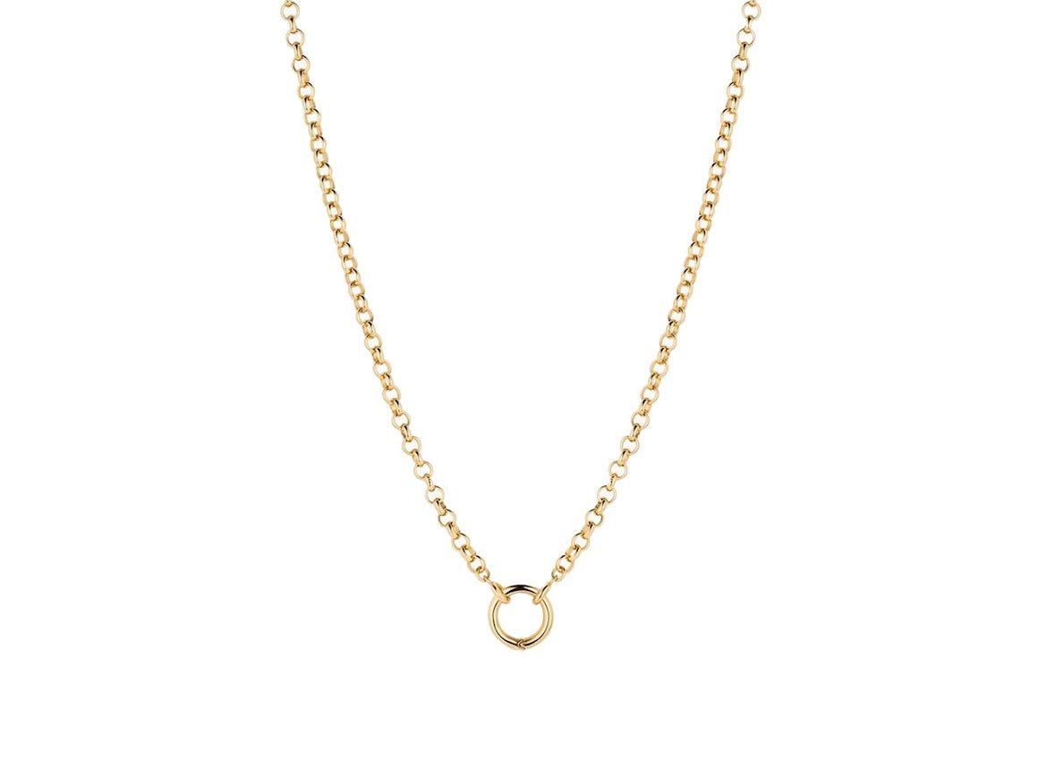 This 14k gold-plated chain features a round loop for holding charms. Also looks great as is. Available in 18-inch and 32-inch lengths.
