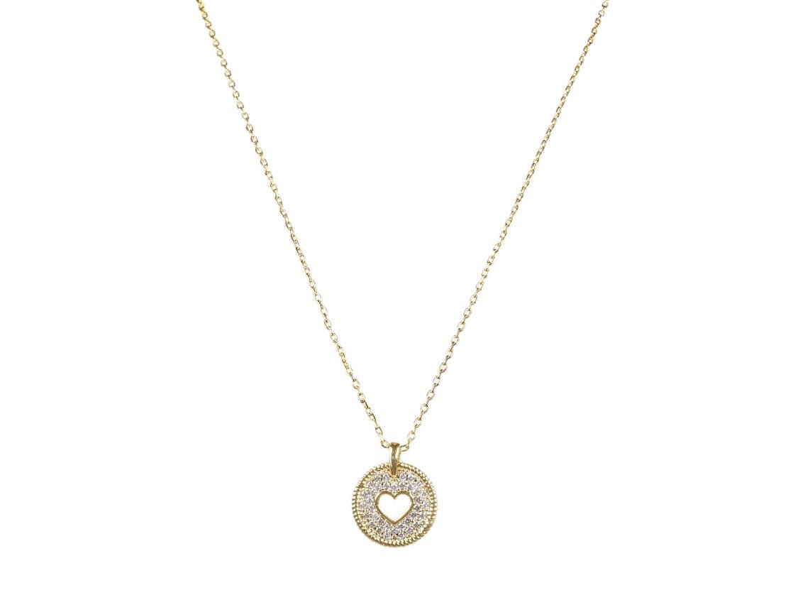 Gold Cut-Out Heart Disc Necklace
