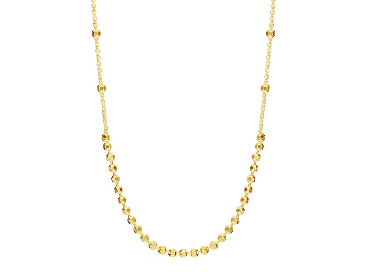 This 14k gold vermeil necklace features an array of diamond-cut beads. 16 inches long with a 2-inch extension.