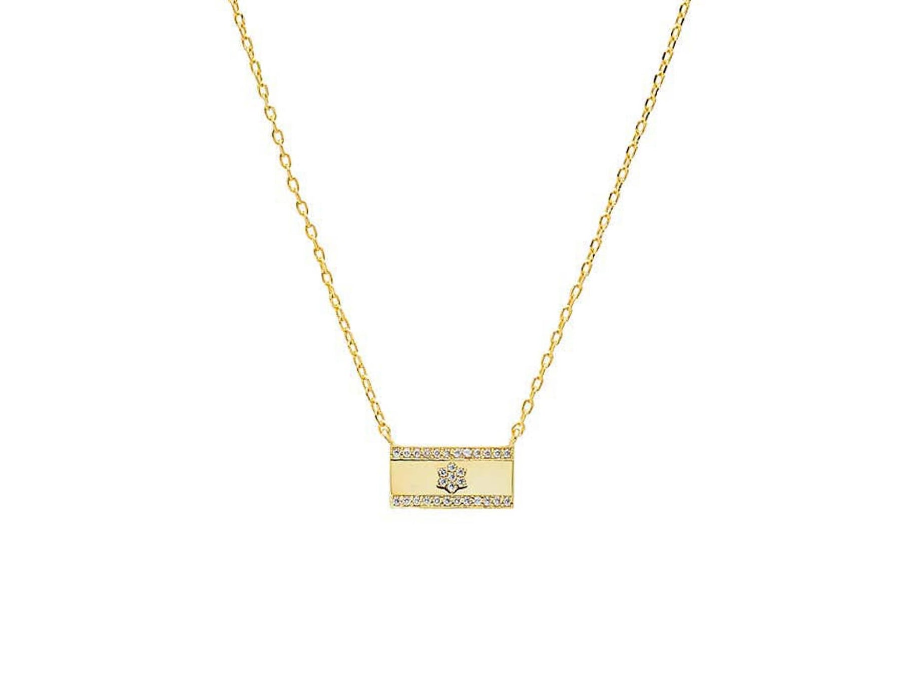 This 14k gold-plated necklace features a flag of Israel pendant that's detailed with cubic zirconia. 16 inches long plus a 2-inch extender. Pendant measures 7mm by 13mm.
