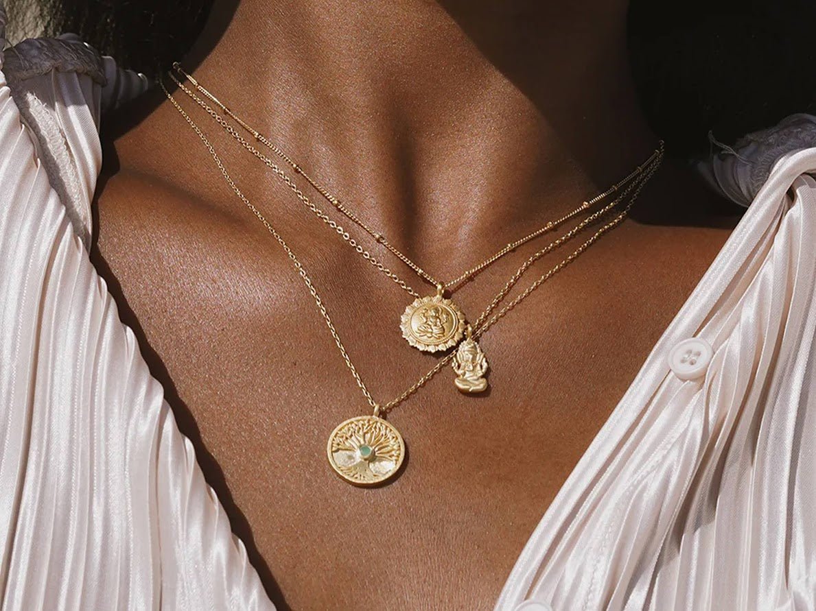 This 18k gold-plated necklace features a Lakshmi charm with "I am abundant" on the back. Charm is 16mm in diameter. Chain is adjustable from 16 to 19 inches. Lakshmi is a symbol of prosperity and abundance.