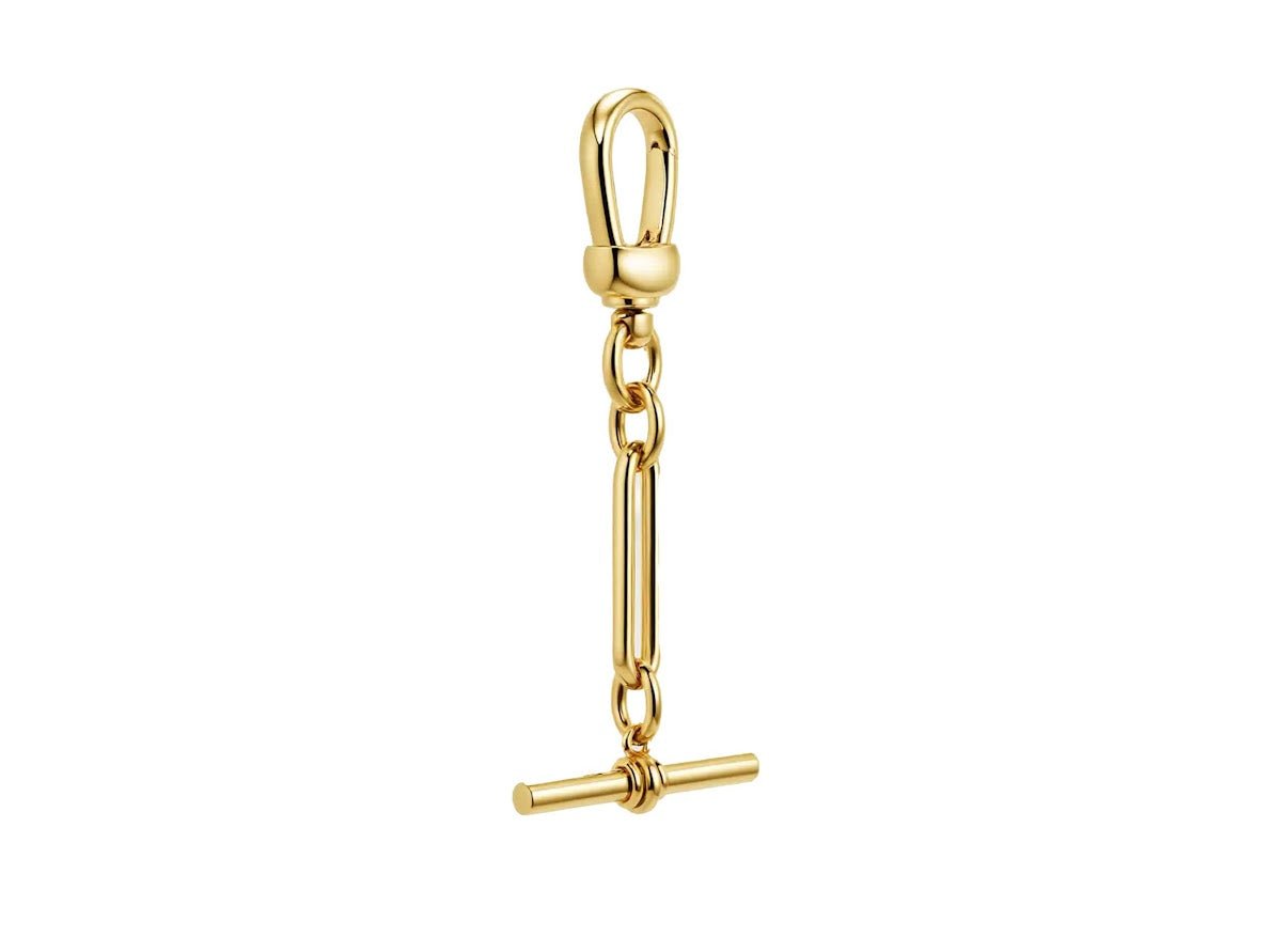 Designed to enhance by creating a t-bar necklace or enhance your charm necklace with more texture and layers, this 14k gold-plated charm is 1.25 inches long. Nickel and lead free.