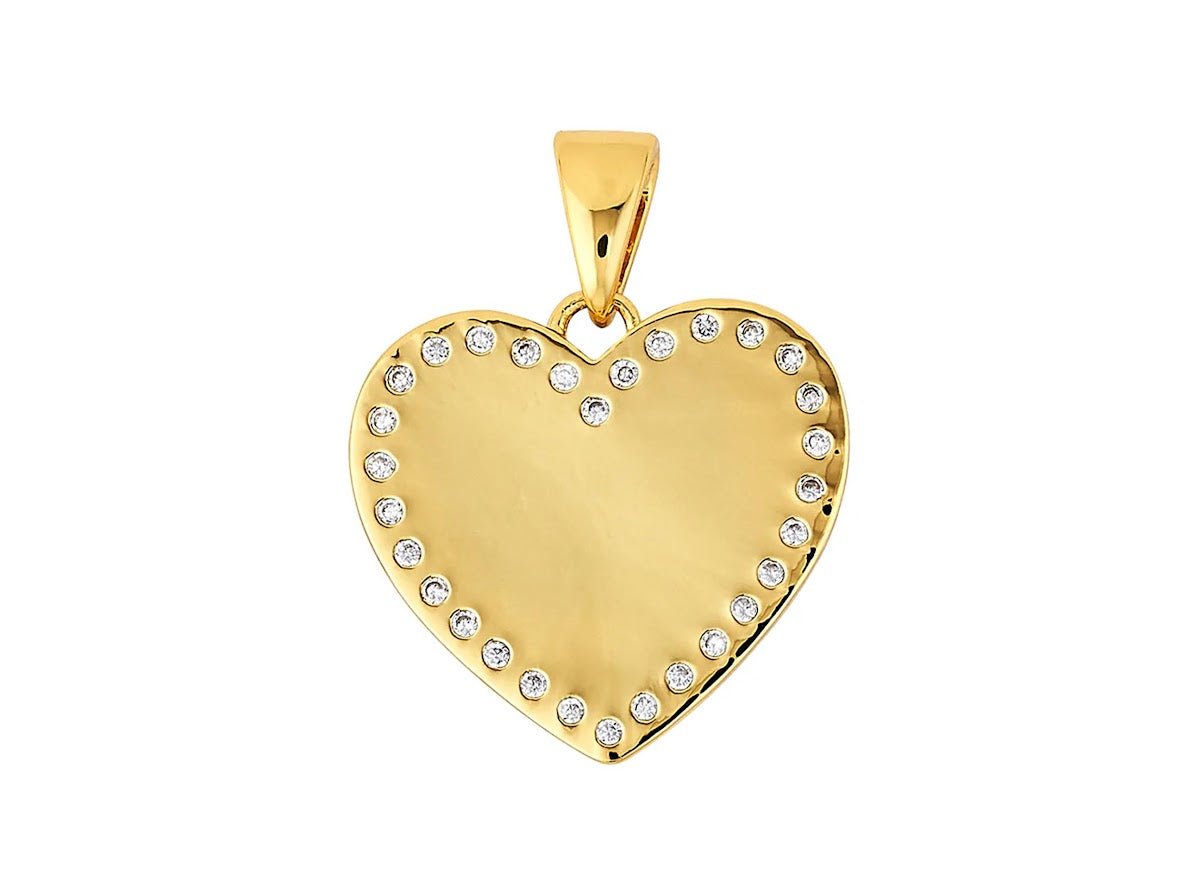 From Asha by ADM: This 14k gold-dipped heart charm is detailed with cubic zirconia along the border. 22mm in diamaeter.