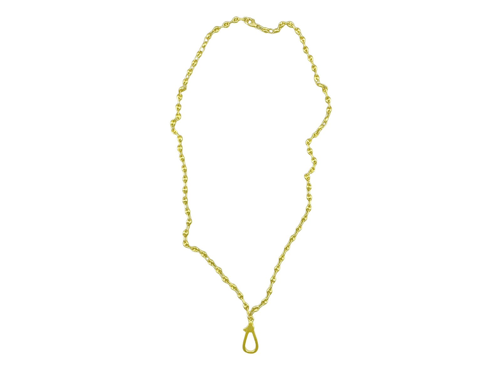 A 14k gold vermeil chain with 5mm mini puffy mariner links. A charm lock pendant is perfect for one or several charms. Available in 18-inch and 24-inch lengths.