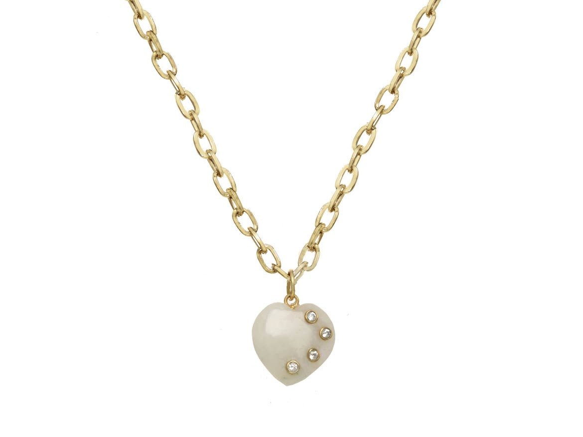 A 14k gold vermeil, moonstone, and cubic zirconia heart charm hangs from a 14k gold-plated rolo chain that's adjustable from 16 to 18 inches. Charm is 1 inch long.