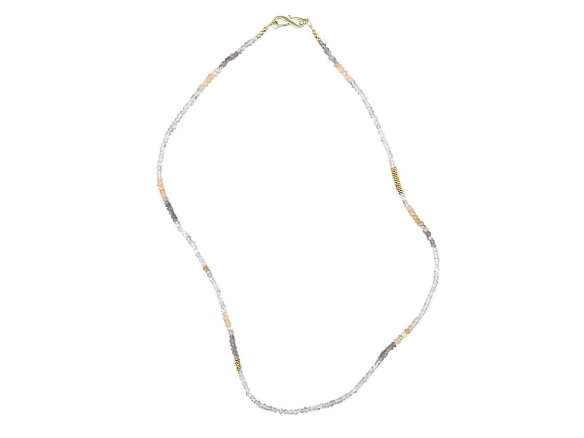 Great alone or stacked, this strand of moonstone beads features 14k gold vermeil detailing and toggle closure. 23 inches long.