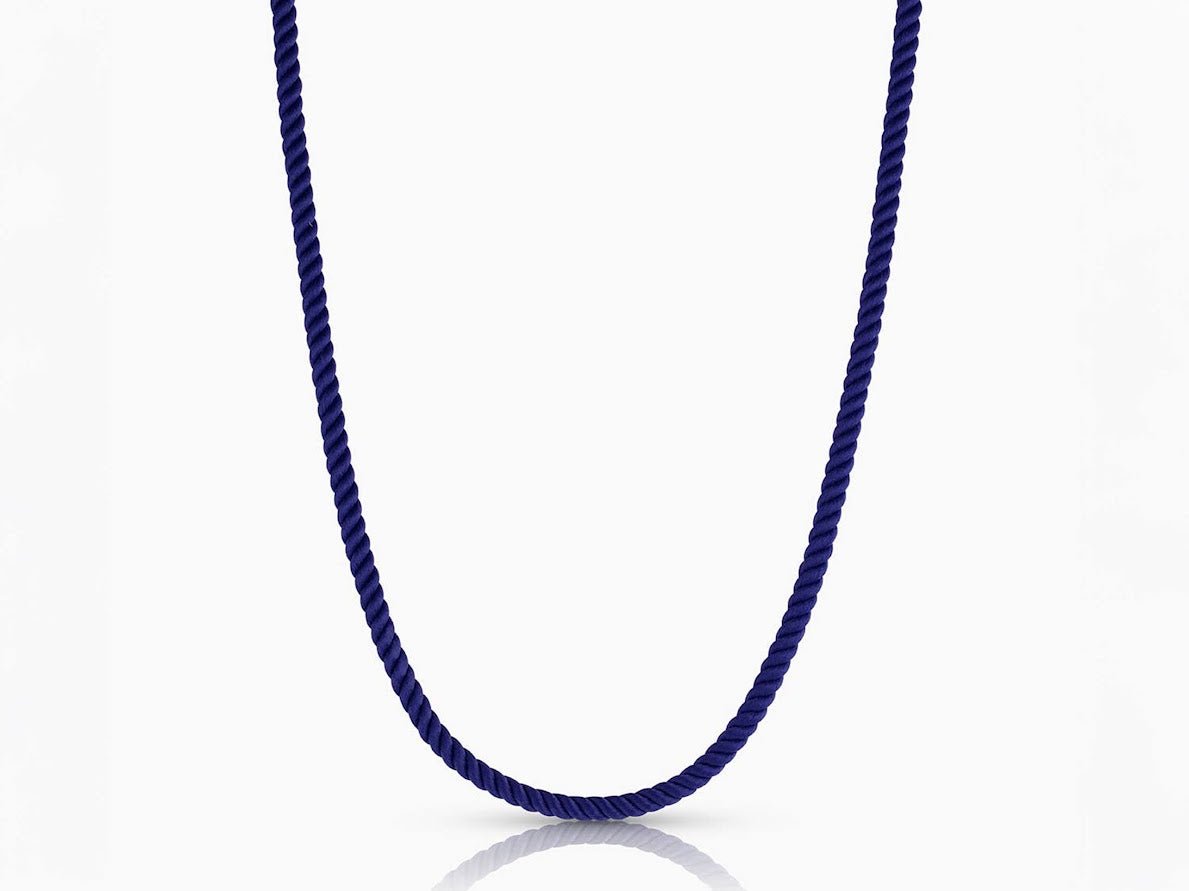 A cord necklace of navy silk that's perfect alone, stacked, or holding your favorite charms. 14k gold plated. Adjustable from 15" to 17"