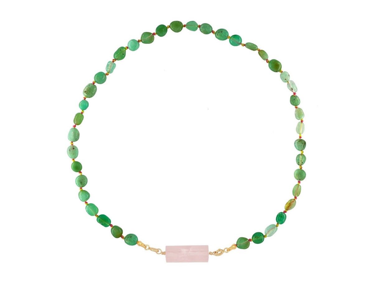 Oval Chrysoprase Bead Necklace with Pink Quartz Column