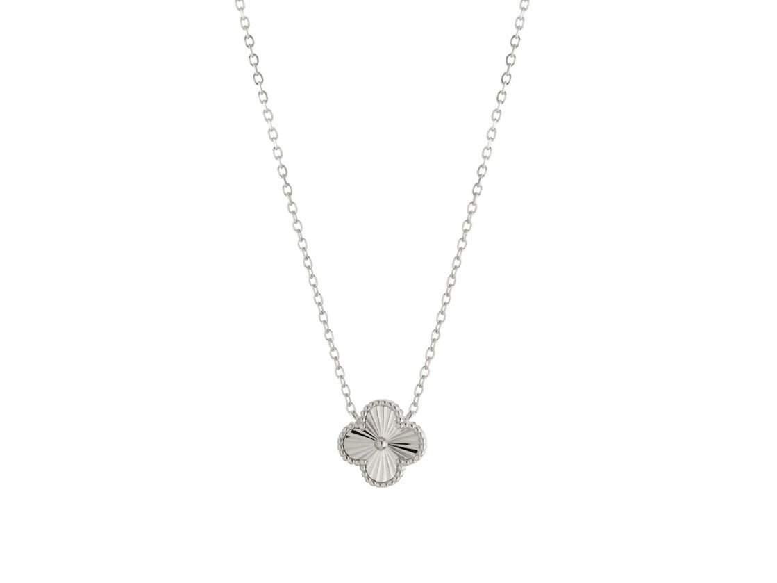 Silver Beaded Clover Necklace