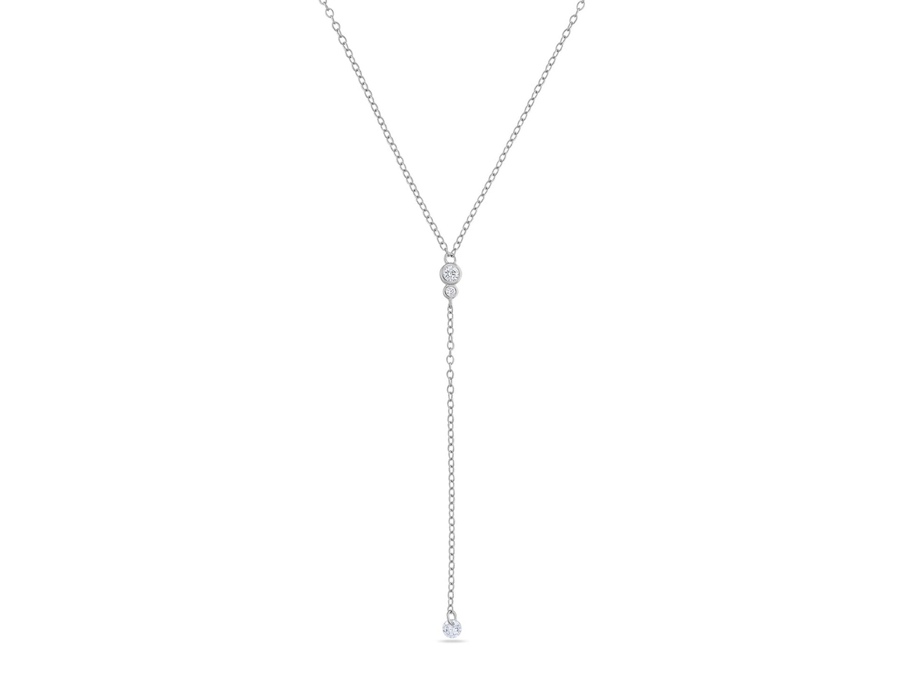 A sleek chain, made of sterling silver, features a cluster of cubic zirconia at the center plus a single cubic zirconia at the end. Chain is adjustable from 16 to 18 inches. Lariat drop is 2.5 inches. Center cluster is 6mm in height. Drop stone is 3mm. Nickel free and hypoallergenic