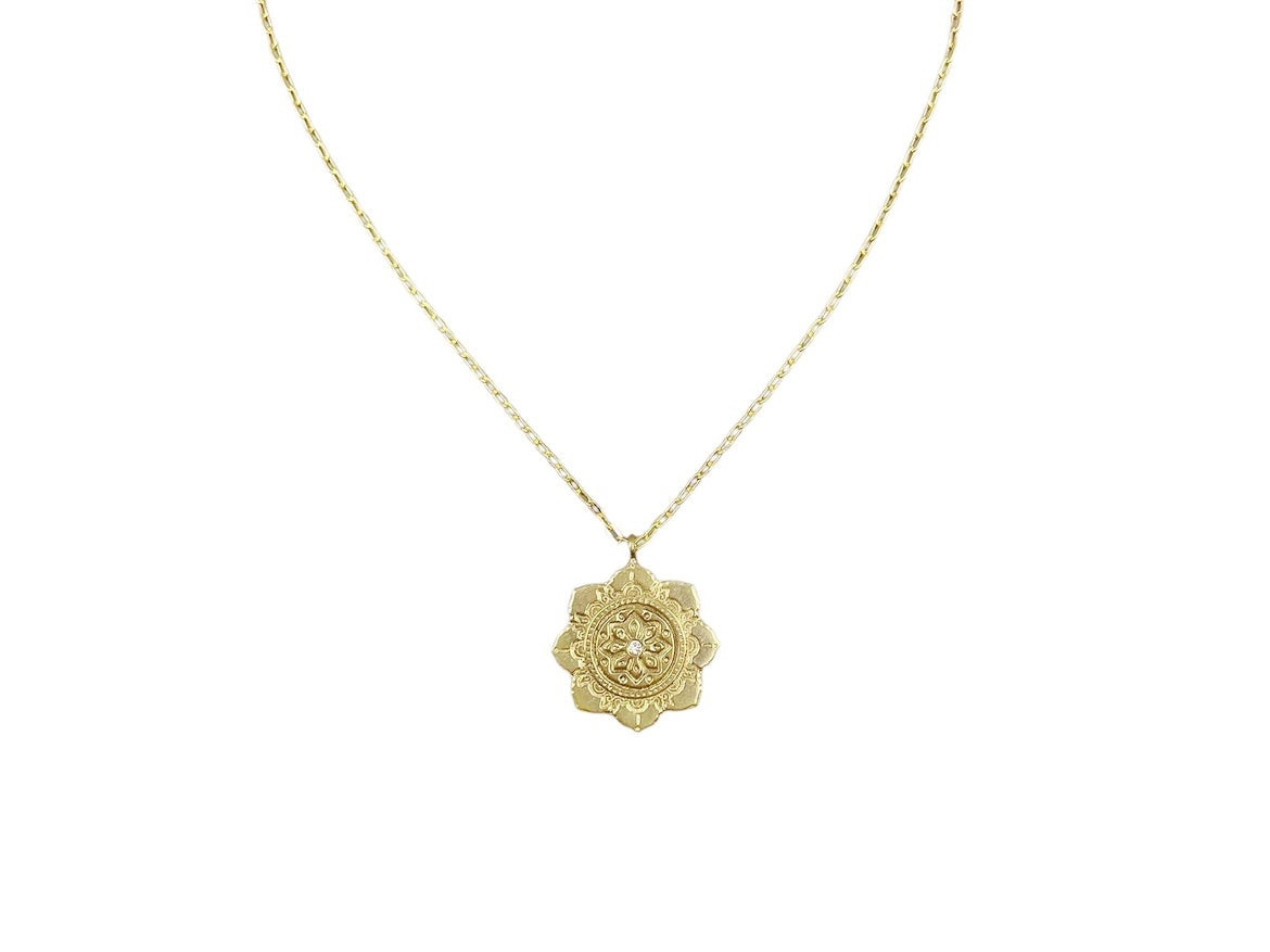 Turquoise and Yellow Bronze Evil Eye Necklace with Diamond