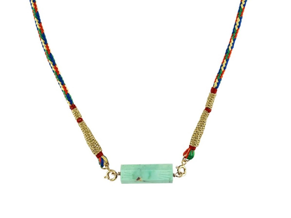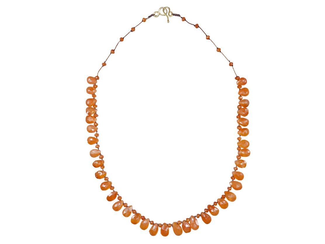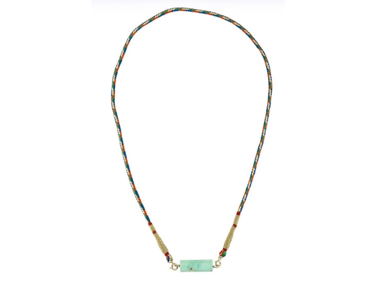 Orange and Gold Woven Necklace with Chalcedony Roller Bead