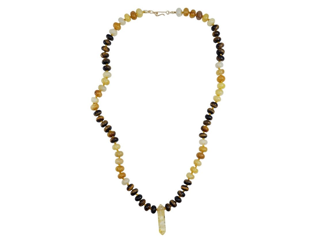 Yellow Jade and Tiger Eye Necklace with Citrine Point