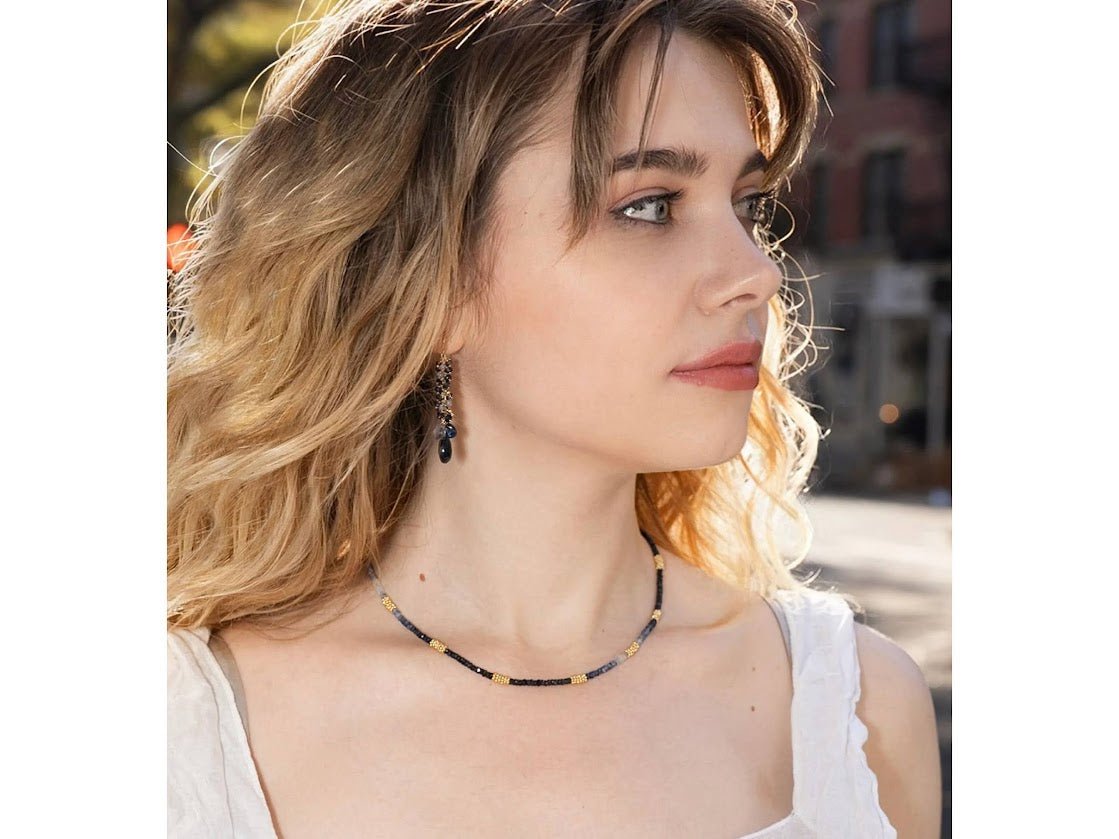 Sapphire and Gold Bead Strand Necklace
