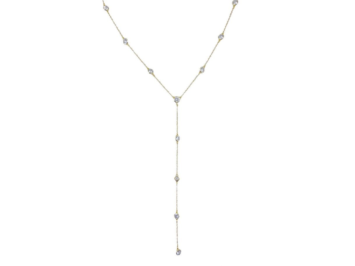 Simple Y Necklace with Bezel CZ Accents