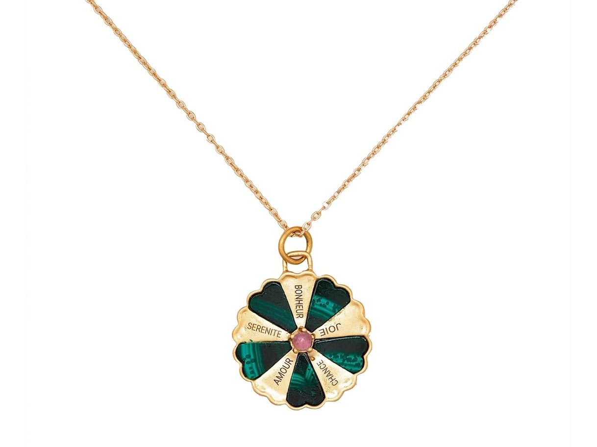 Malachite Make a Wish Necklace with Pink Quartz