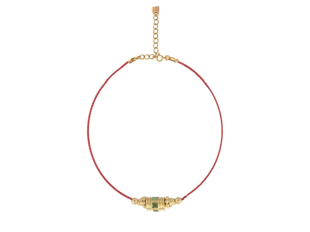 Woven Red Thread Rakhi Choker with Green Onyx Bead