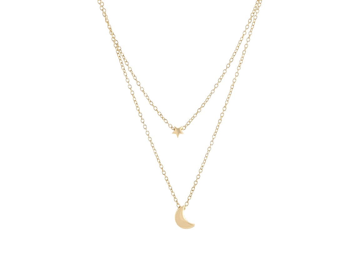 Moon and Star Double Strand Necklace