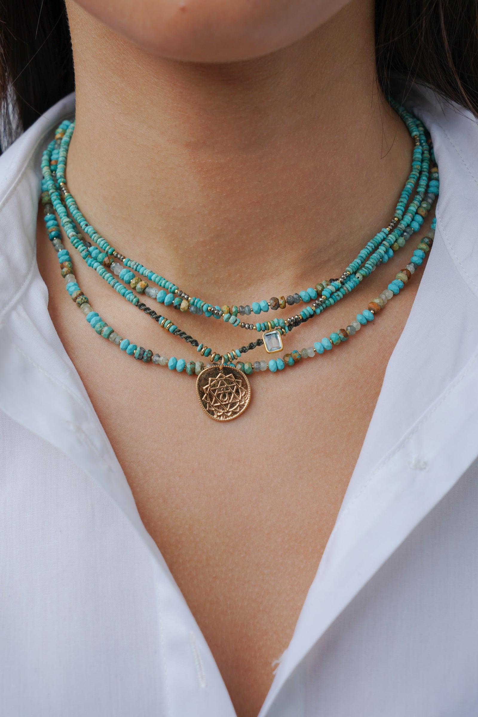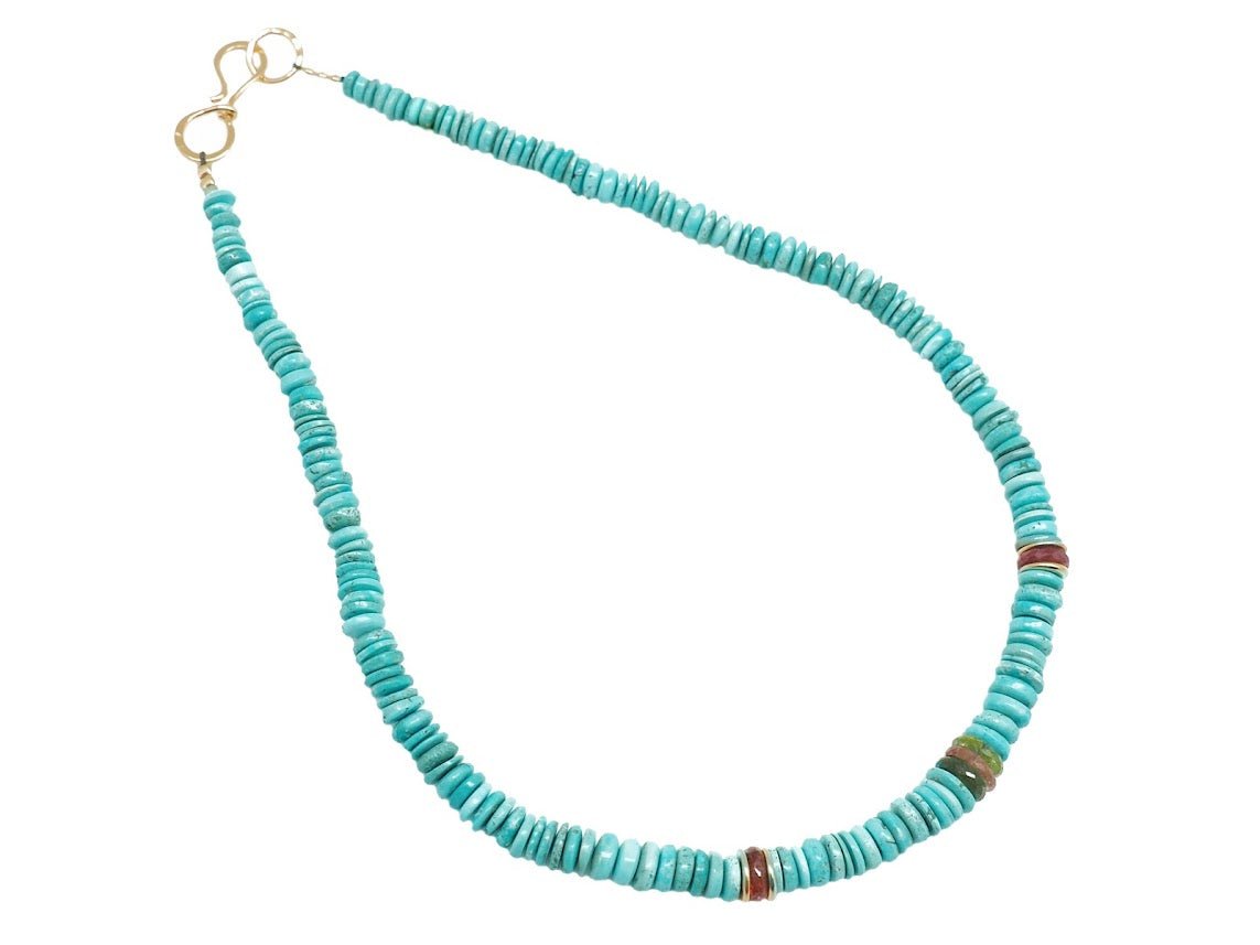 Turquoise Disc Necklace with Multicolor Tourmaline Discs