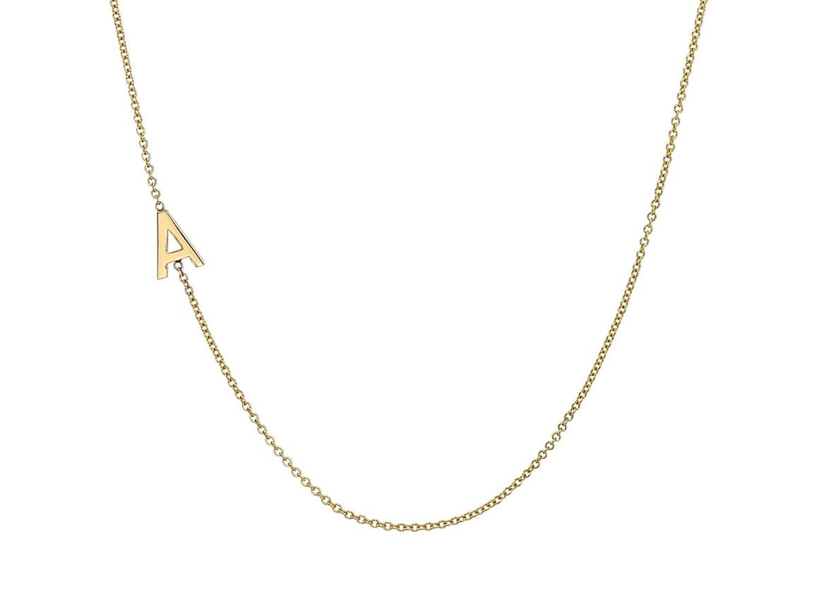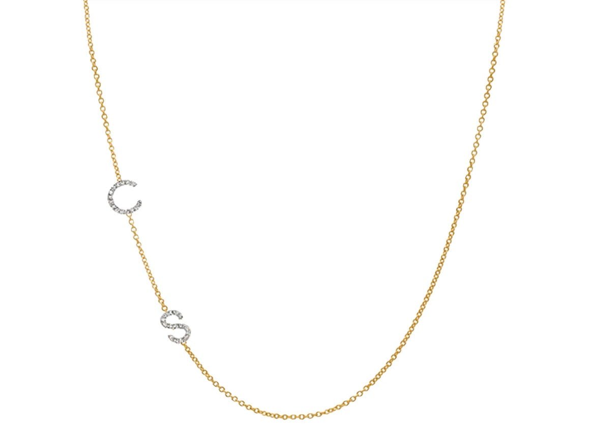Also available in white gold and rose gold. Please contact us with gold color, initials, and length choices.