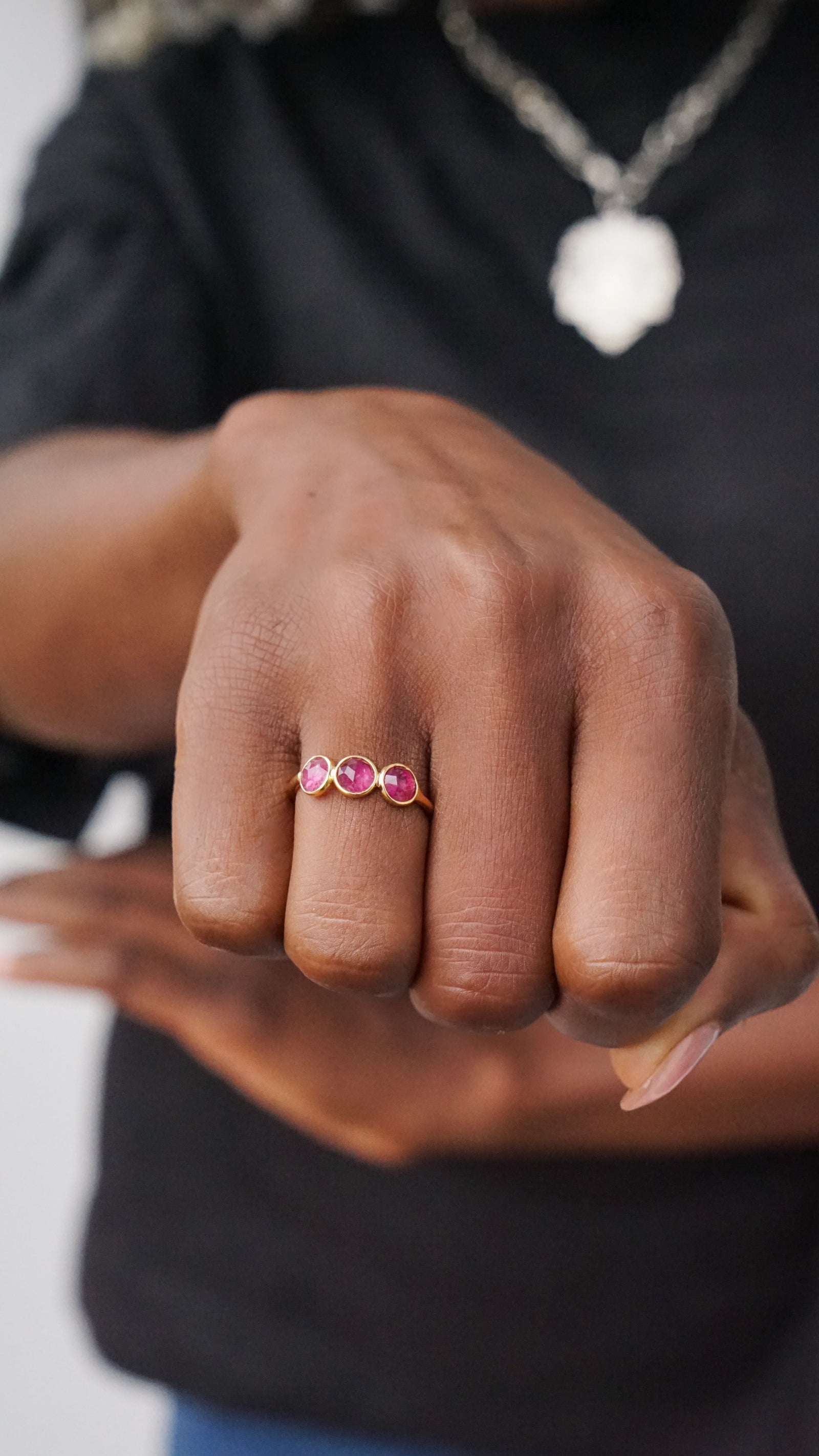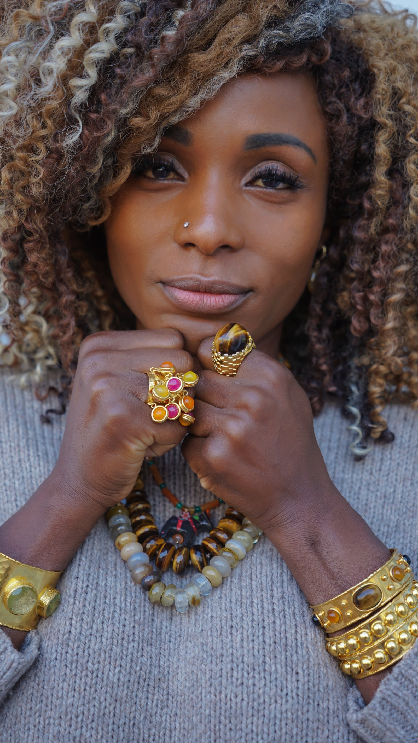 Carnelian, Yellow Onyx, and Pink Jade Candies Ring