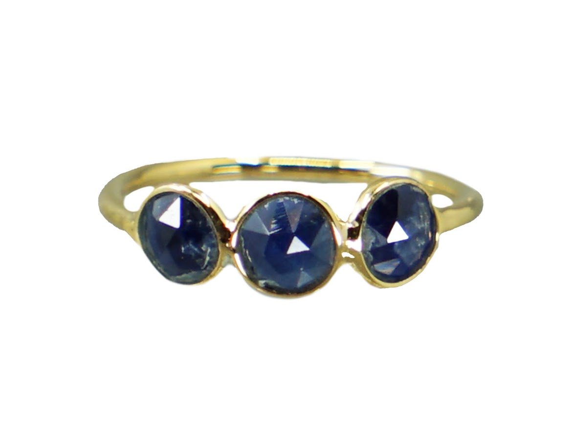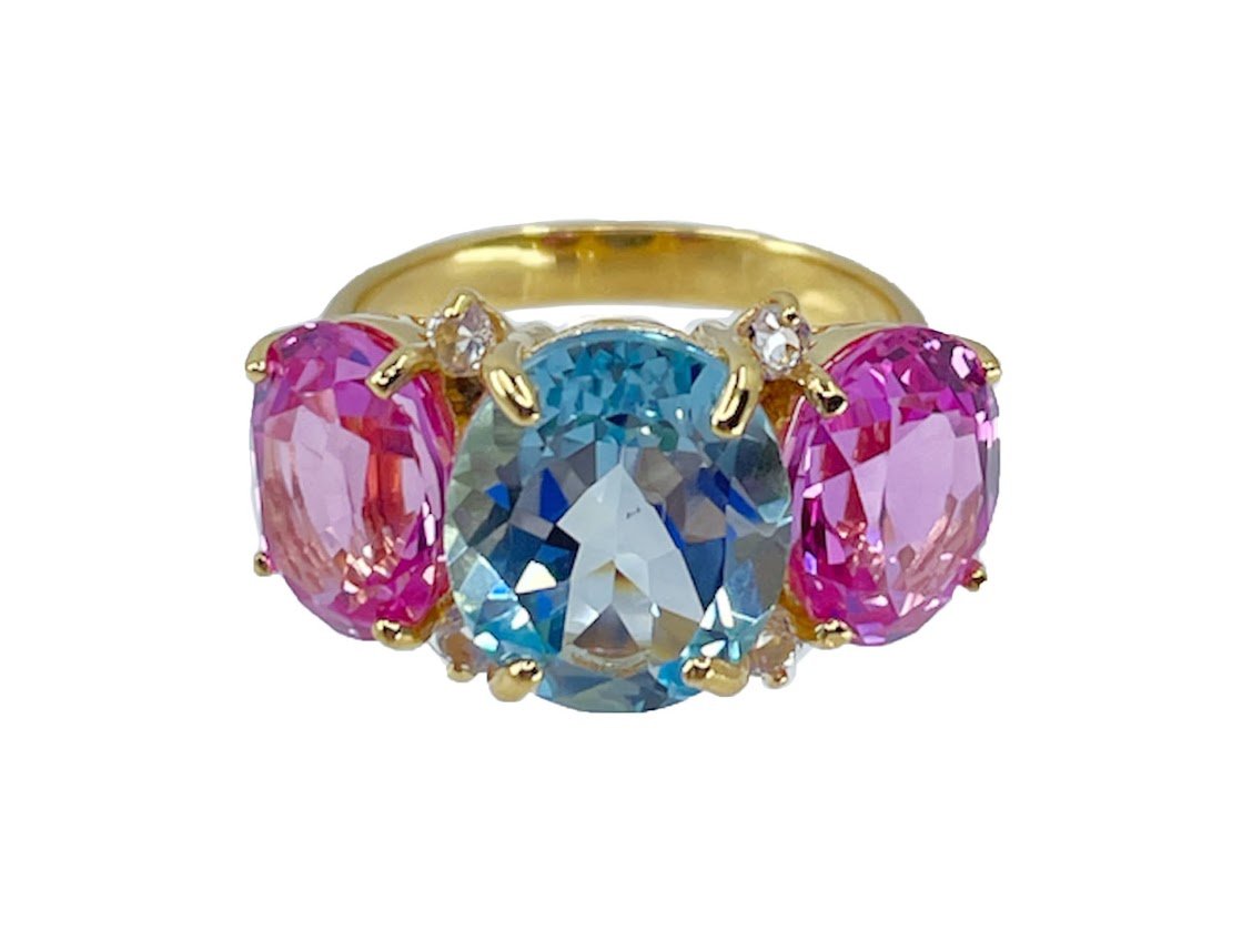 Three-Stone Blue Topaz and Pink Sapphire Ring with White Topaz