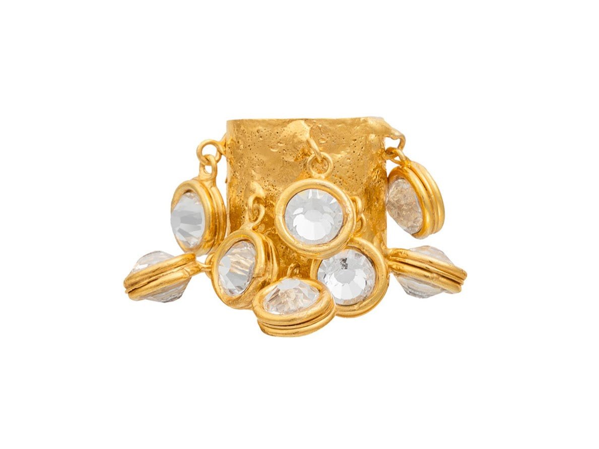 From Sylvia Toledano and made in France: Made of 22k gold over brass, this dazzling ring features multiple Swarovski crystals, all set on tiny chains for movement and delight. Nickel free.
