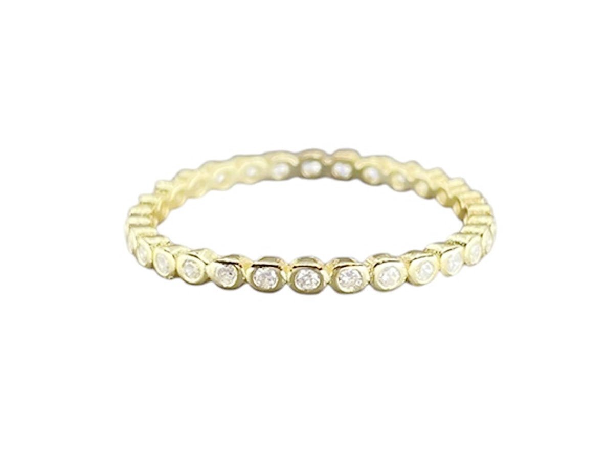 This gold vermeil skinny infinity band, detailed with round cubic zirconia, is available in sizes 5, 6, 7, and 8. Can be ordered in sizes 4 and 9.