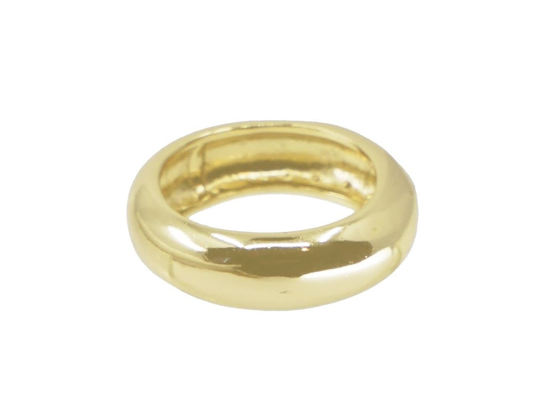 This 18k gold-filled donut band is nickel-free and waterproof. It's a perfect statement ring for your middle or index finger, also, looks great with 2 stacked. Available in sizes 5, 6, 7, and 8.