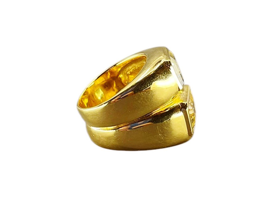 From Tay of London: A stunning double band ring made of 18k gold plated over polished brass with citrine and lemon quartz stones. Nickel free. Size 9. Can be ordered in other sizes.