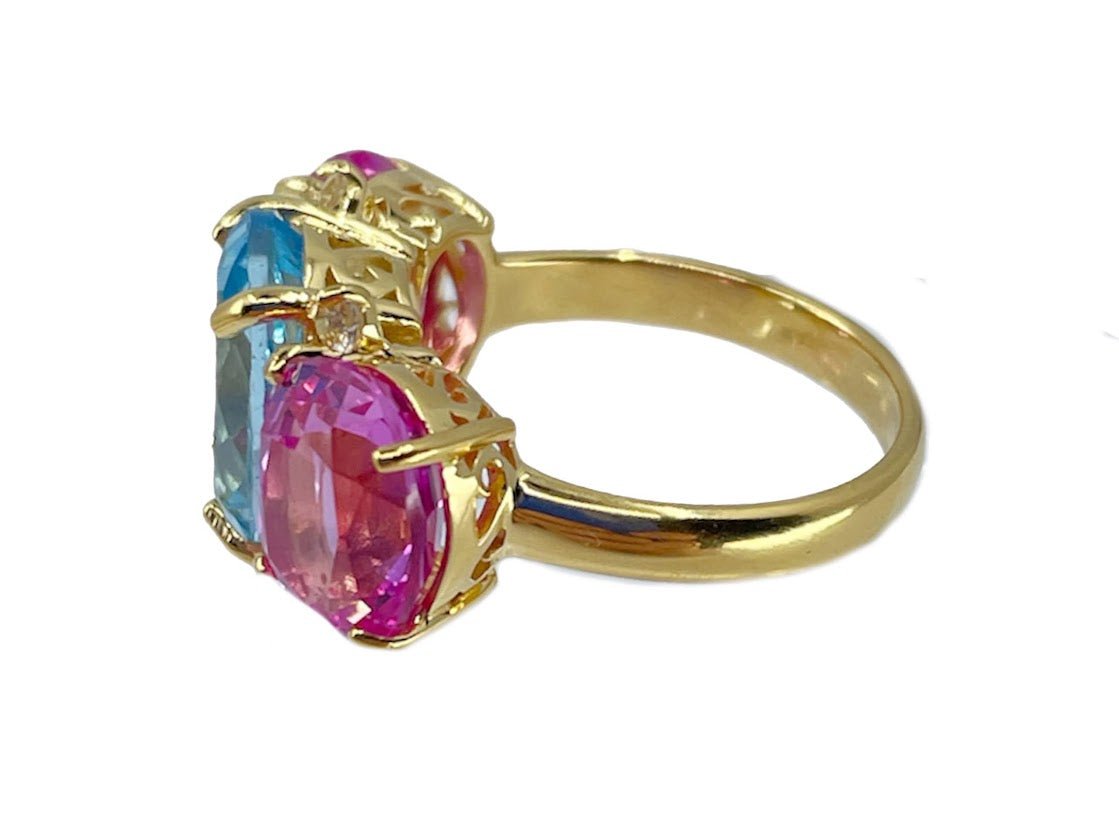 Three-Stone Blue Topaz and Pink Sapphire Ring with White Topaz