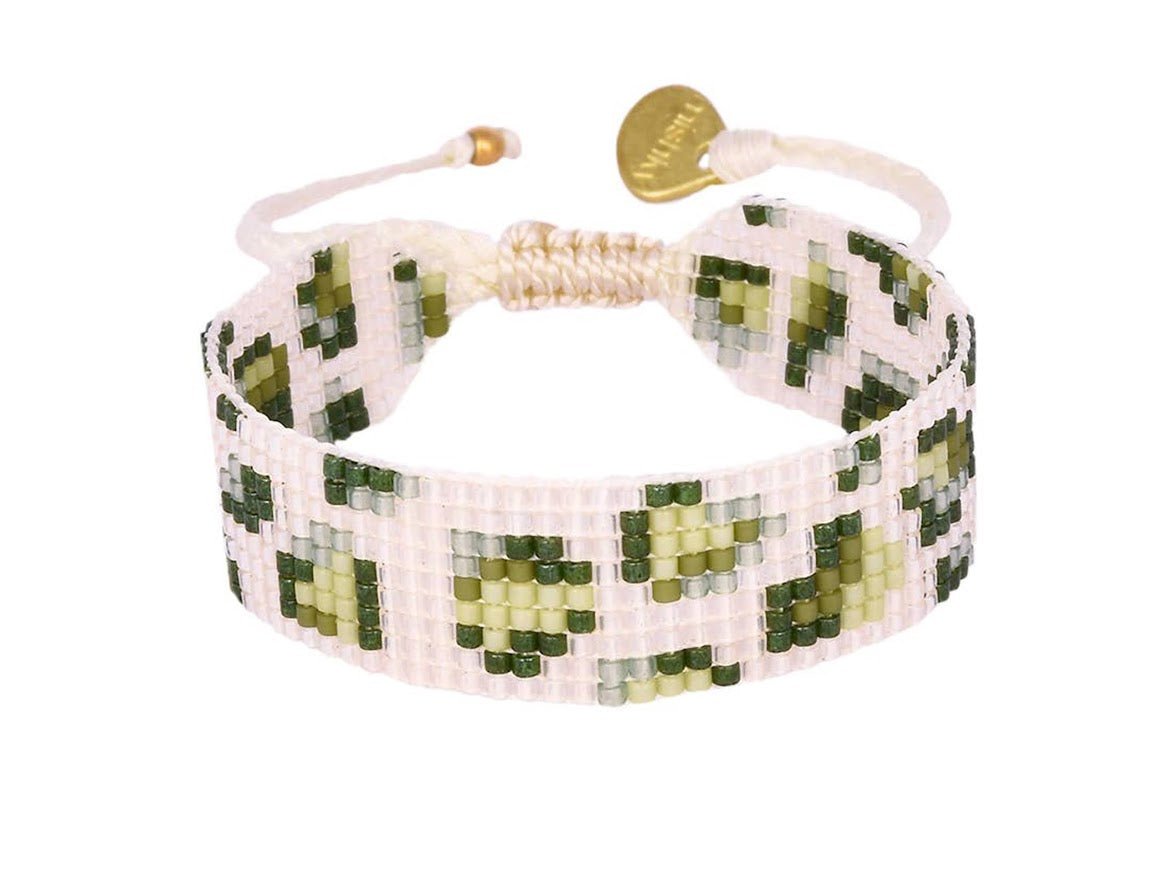 Slim White, Green, and Olive Panther Beaded Bracelet.