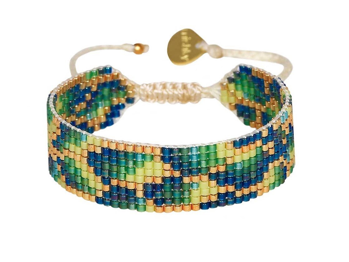 Slim Green, Blue, and Gold Bead Adjustable Bracelet.