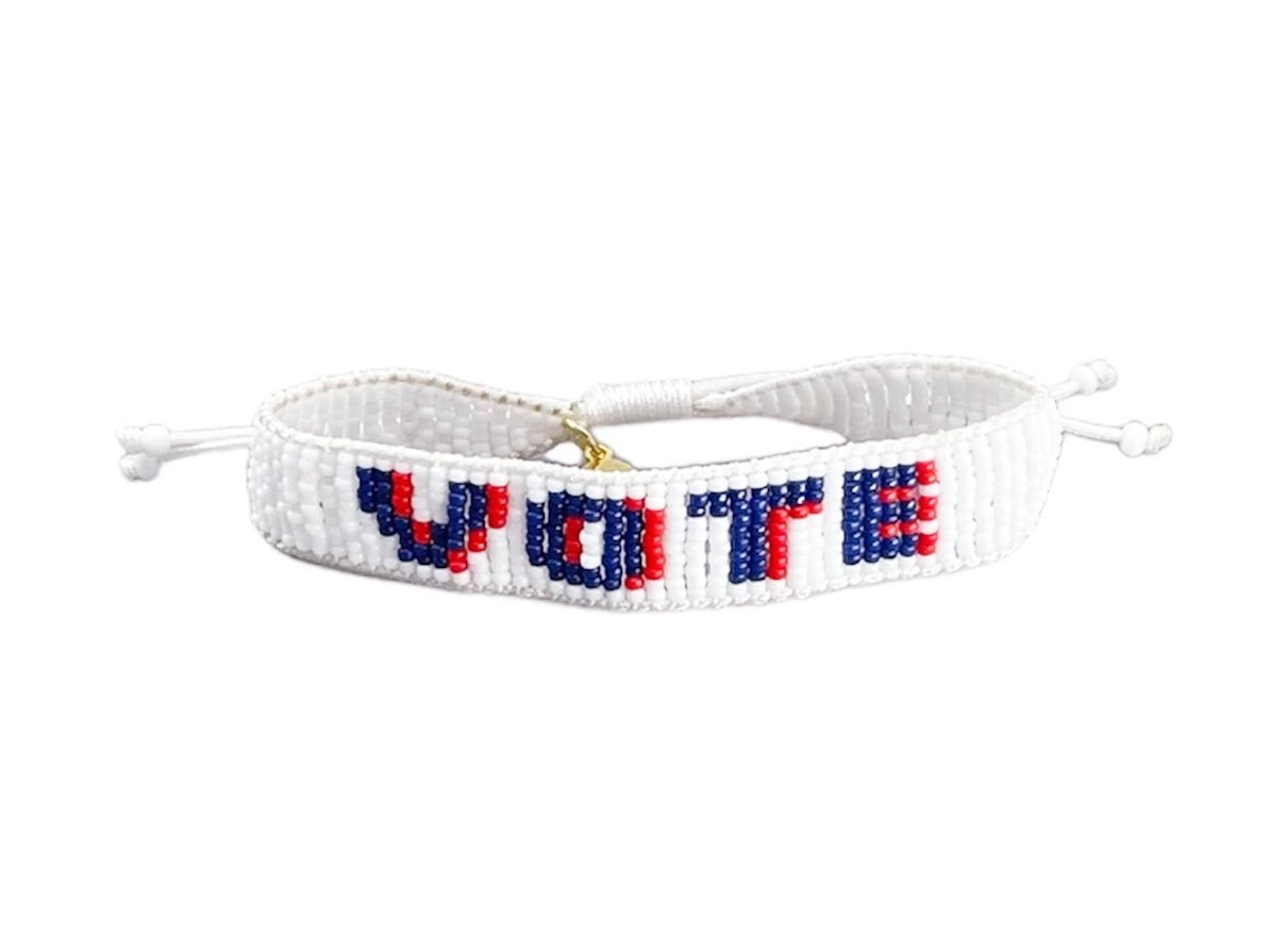 Navy, Red, and White Beaded Evil Eye Bracelet.