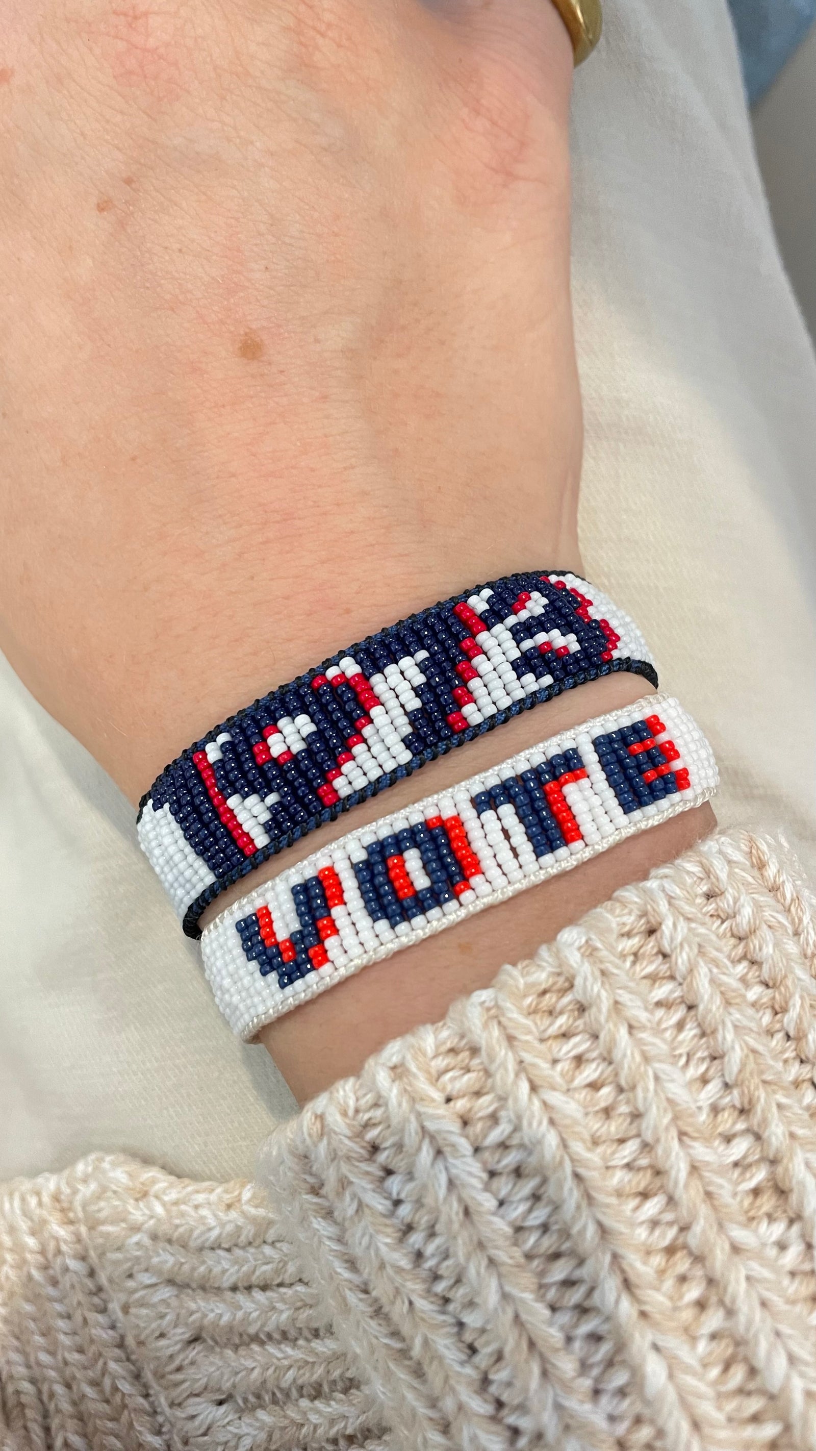 Navy, Red, and White Beaded Rectangles Bracelet.