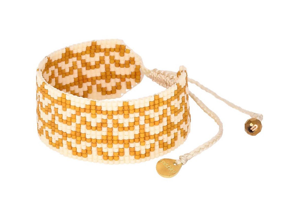 Narrow Blue, Gold, and Ivory Woven Bead Bracelet.