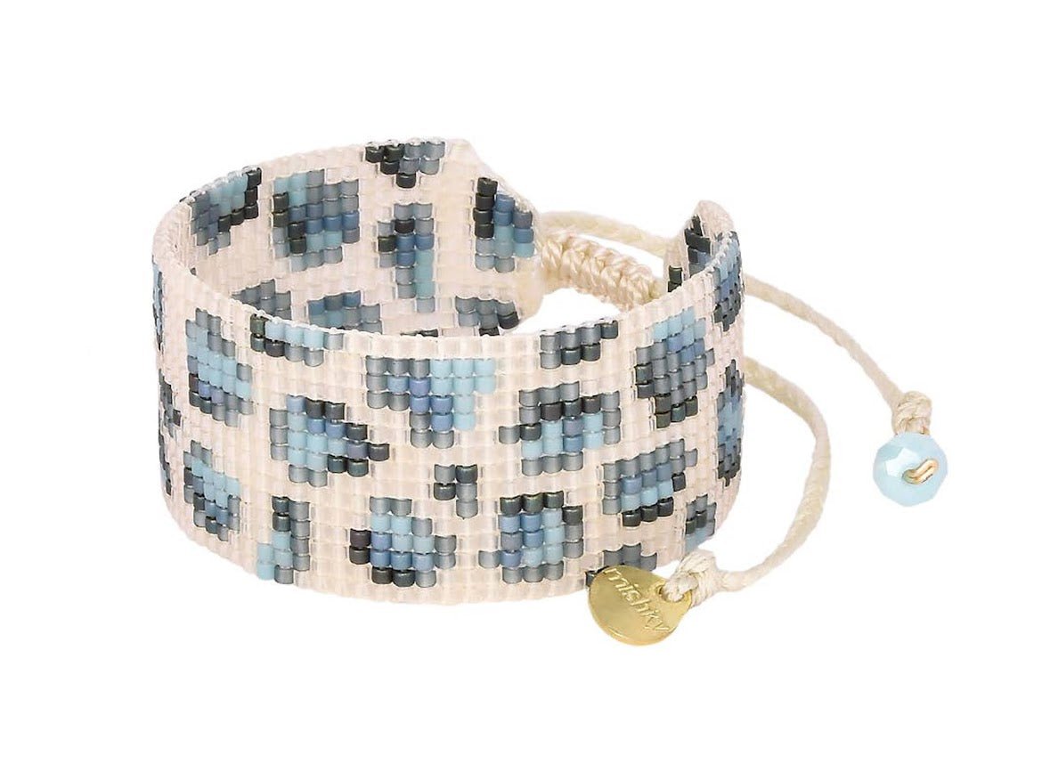 Navy, Silver, White, and Pale Blue Panther Beaded Bracelet.