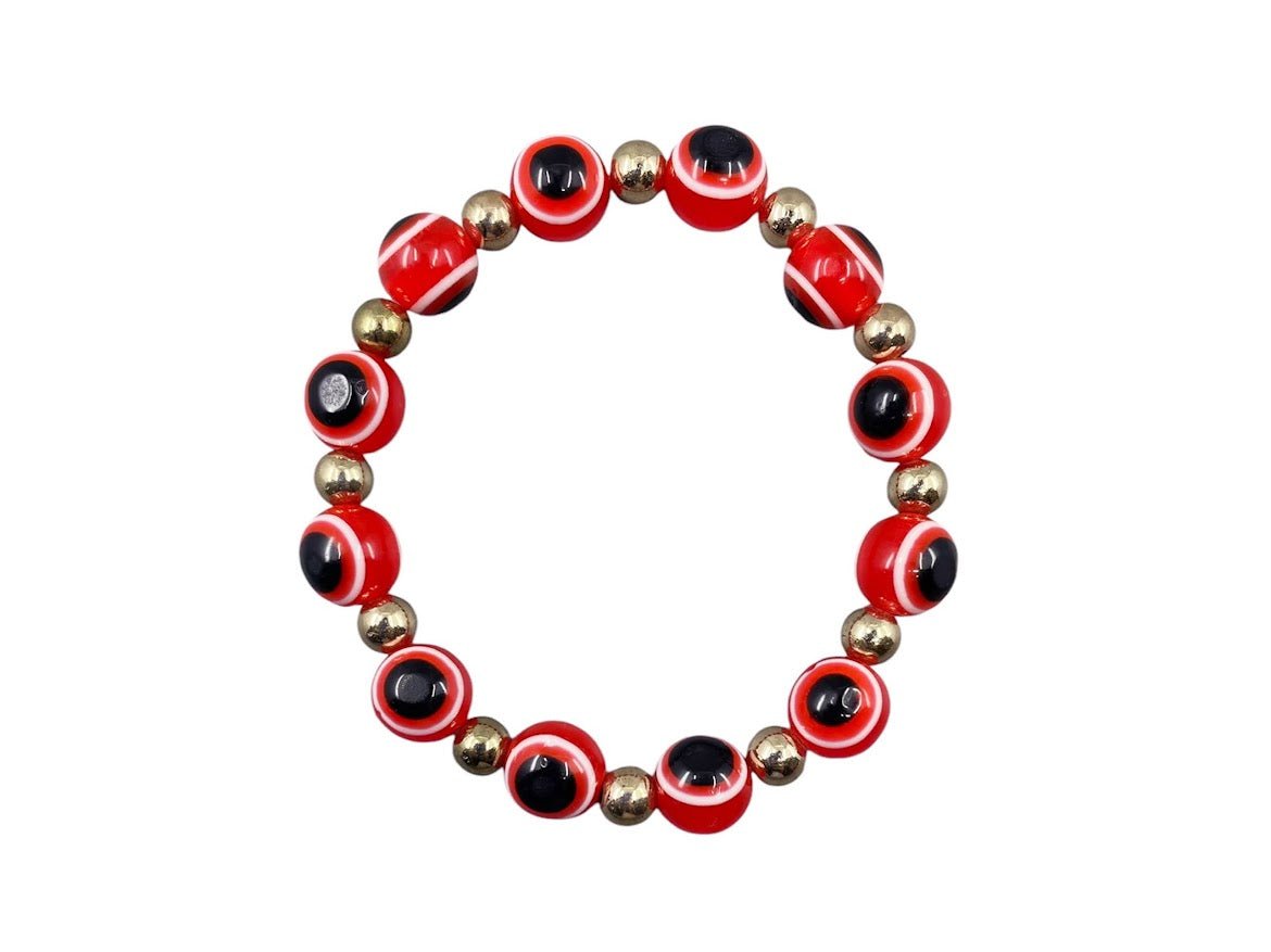 Gold Bead Bracelet with Red Glass Evil Eye Beads.