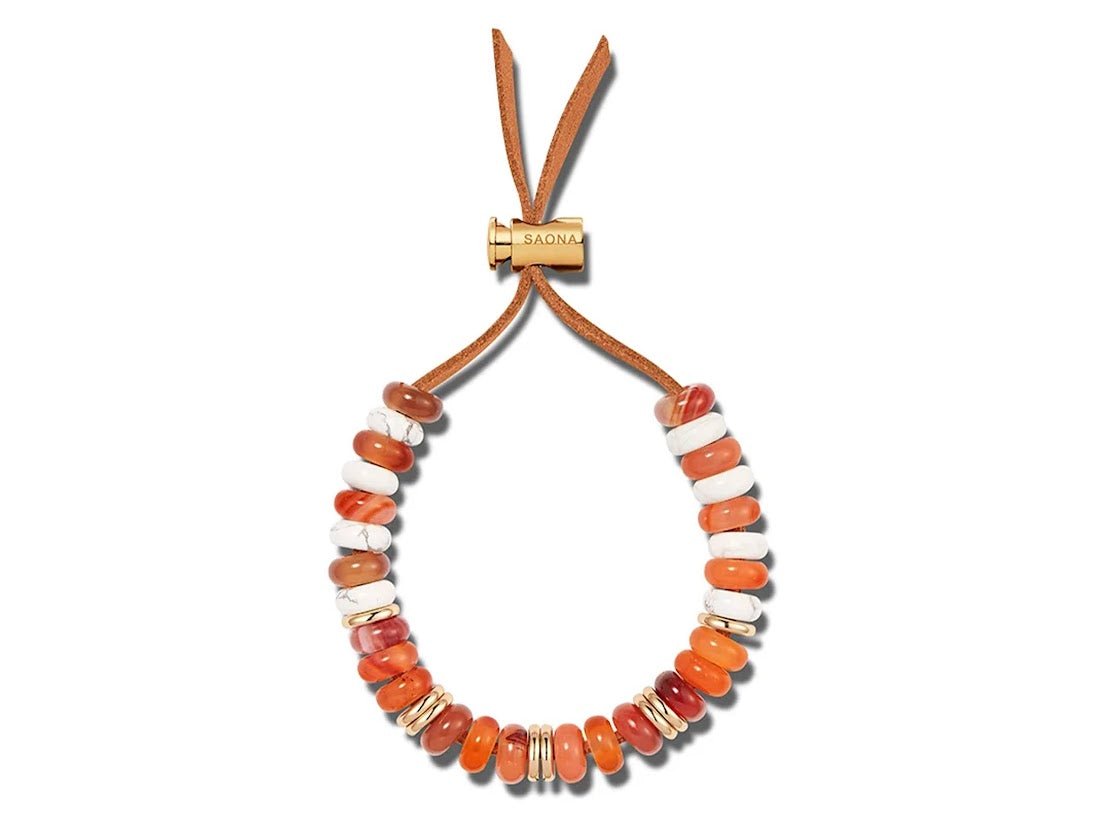 Narrow Orange and Green Evil Eye Beaded Bracelet.