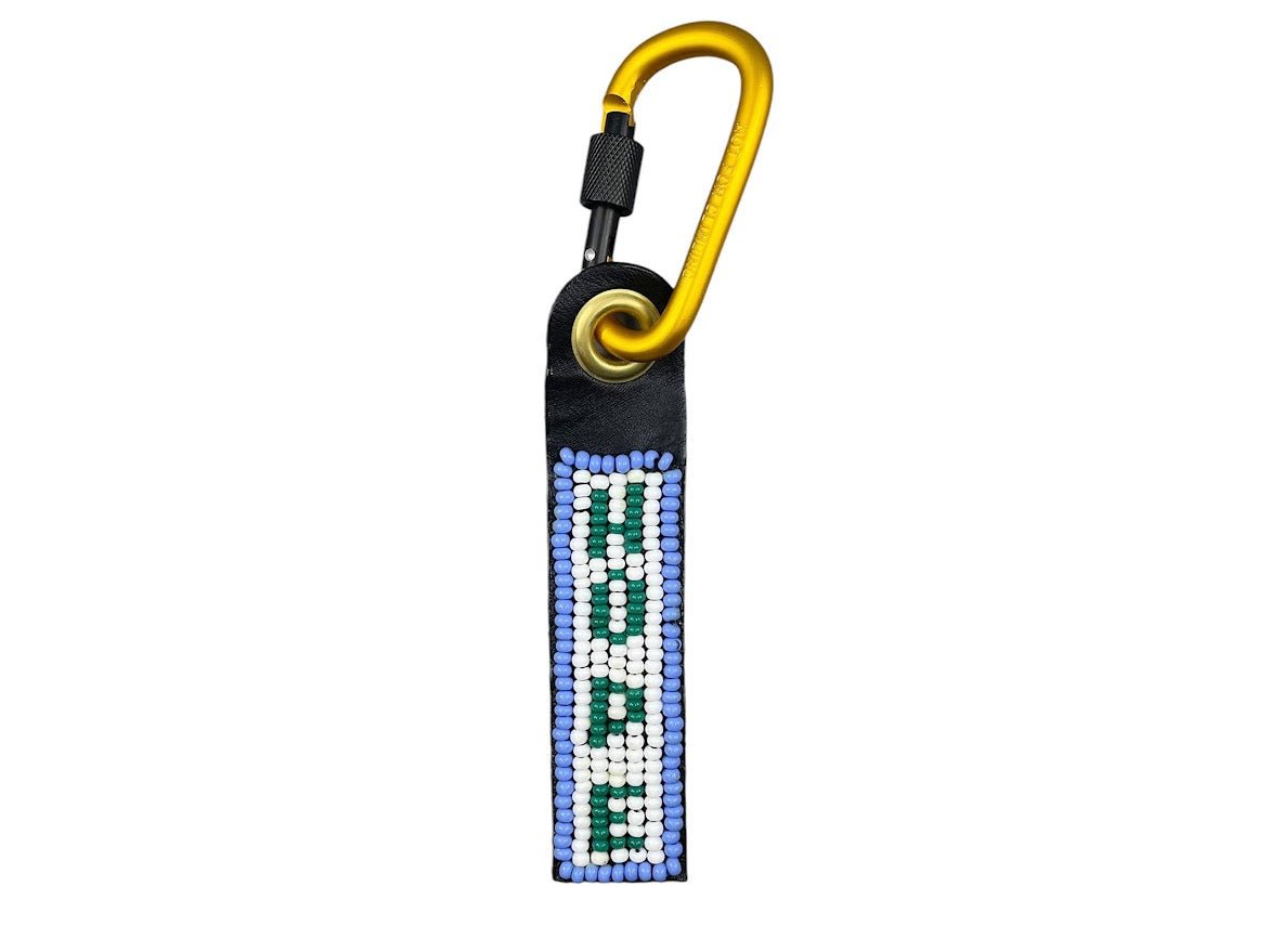 Made of 100% black suede with glass beads, this HOPE bag charm measures 16cm by 3cm and can also be used as a keychain. Handmade in Italy.